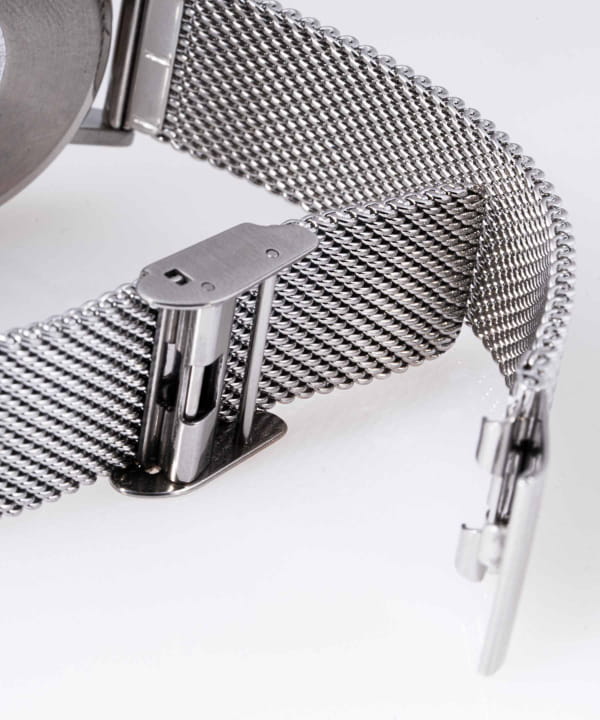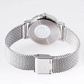 Серебристая гамма всегда останется актуальной, давая возможность экспериментировать с цветовыми сочетаниями в одежде. Аксессуар имеет стильный браслет миланского плетения с регулируемым креплением, который позволяет часам выглядеть как украшение. Кварцевый японский механизм с высокой точностью хода. Срок службы аккумулятора составляет 3 года. IP-покрытиеIP-покрытиеМетод ионного напыления. Демонстрирует повышенную устойчивость к истиранию, окислению и химическим веществам. Под воздействием высокого давления и температуры около 1500°C молекулы металла надёжно соединяются с частицами корпуса часов..