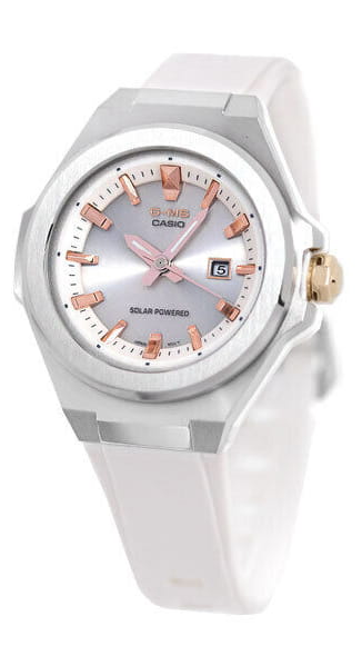 Женские японские часы Casio Baby-G MSG-S500-7AER из коллекции Baby-G стали отражением спортивного дизайна с элементами в стиле fashion. Модель сочетает несколько вариаций розового: металлизированные стрелки, индексы, заводная головка, пастельный оттенок полимерного ремешка. Такое исполнение поможет девушкам, ведущим активный образ жизни, не забывать о своей женственной натуре. Наручные часы реализуют технологию Tough SolarTough SolarТехнология основана на подзарядке аккумулятора от источника солнечного света, специальная панель улавливает солнечные лучи и преобразует их в энергию для работы часов. Достаточно пары минут нахождения на солнце для функционирования часов в течении суток., получая питание от солнца и искусственных источников света. При полностью зараженной батарейке японский кварцевый механизм способен проработать до 5 месяцев без подзарядки. Противоударный корпусУдаропрочный корпусМеханизм заключён в корпус, выполненный из современных материалов, устойчивых к ударам, механическим повреждениям и падению с высоты: инновационный пластик, карбон, нержавеющая сталь, титан. сделан из полимерного материала и нержавеющей стали 316L, что позволяет не бояться последствий ударов, падения. Циферблат оснащён минеральным стекломМинеральное стеклоМинеральное стекло представляет собой искусственно выращенный минерал кварца. Такое стекло отличается особой устойчивостью к повреждениям и царапинам. Уступает по некоторым качествам сапфировому стеклу., оно отличается прочностью, устойчивостью к образованию царапин. Завинчивающаяся заводная головка способствует усилению водостойкости до 10 бар. Стрелки покрыты светонакопительным люминесцентным составомЛюминесцентное покрытиеПозволяет считывать показания времени в темноте. Производители наносят на стрелки, часовые индексы, безель или поверхность циферблата светонакопительный состав, дающий холодное свечение.. На позиции 3 часов размещена апертура текущего числа. Габариты: 38,8 x 42,4 x 10,5 мм.