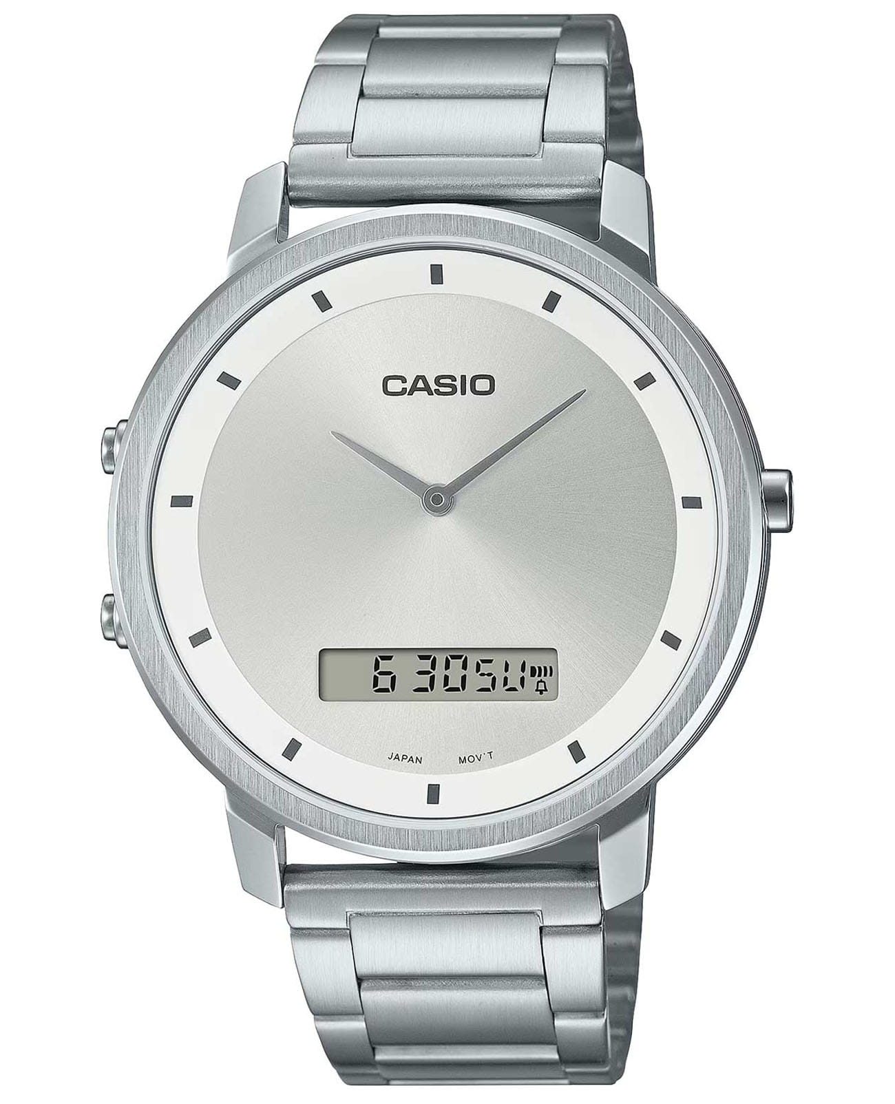Японские мужские наручные часы-хронографХронографФункция позволяет измерять отрезки времени с особой точностью: часы, минуты, секунды. Верным признаком хронографа является наличие на циферблате 3 дополнительных окошек-счётчиков. Casio Collection MTP-B200M-7E с минеральным стекломМинеральное стеклоМинеральное стекло представляет собой искусственно выращенный минерал кварца. Такое стекло отличается особой устойчивостью к повреждениям и царапинам. Уступает по некоторым качествам сапфировому стеклу., кварцевый механизм с высокой точностью. Класс водозащиты: 30 метров, позволит защитить корпус от случайных брызг или капель дождя.12 и 24-часовой формат времени. СекундомерСекундомерСекундоме́р — прибор, способный измерять интервалы времени с точностью до долей секунды. с точностью показаний 1/100с и временем измерения 60мин. Второй часовой поясВторой часовой поясФункция, позволяющая отображать время двух часовых поясов одновременно.. Циферблат с метками в виде штрихов выполнен по технологии Sunray (солнечные лучи). Задняя крышка крепится на 4-х винтах. Батарея рассчитана на 3 года. Браслет с раскладной застёжкойРаскладная застёжкаТакой тип застёжки используется только на браслетах из металла. Она никогда не раскрывается полностью, происходит разделение на 2 и более частей. Раскладывающая застёжка снизит вероятность потери часов к минимуму.