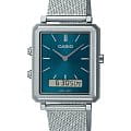 Японские мужские часы- хронографХронографФункция позволяет измерять отрезки времени с особой точностью: часы, минуты, секунды. Верным признаком хронографа является наличие на циферблате 3 дополнительных окошек-счётчиков. с минеральным стекломМинеральное стеклоМинеральное стекло представляет собой искусственно выращенный минерал кварца. Такое стекло отличается особой устойчивостью к повреждениям и царапинам. Уступает по некоторым качествам сапфировому стеклу. Casio Collection MTP-B205M-3EDF, кварцевый механизм с высокой точностью. Корпус часов изготовлен из стали. Мужские аналогово-цифровые часы. 12 и 24-часовой формат времени. СекундомерСекундомерСекундоме́р — прибор, способный измерять интервалы времени с точностью до долей секунды. с точностью показаний 1/100с и временем измерения 60мин. Второй часовой пояс. Циферблат с метками в виде штрихов. БудильникБудильникБуди́льник — часы, в заданный момент времени подающие звуковой, световой и/или в редких случаях другой сигнал., ежечасный сигнал. Батарея рассчитана на 3 года. Класс водозащиты: 30 метров, позволит защитить корпус от случайных брызг или капель дождя. Стальной браслет миланского плетения на раскладном замкеРаскладной замокДанный вариант застежки используется только на часах с металлическим браслетом. Отличительная особенность такого крепления в том, что длина браслета становится универсальной и вы можете самостоятельно отрегулировать нужный вам размер – застежка просто двигается по браслету часов..