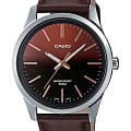 Японские мужские наручные часы с минеральным стекломМинеральное стеклоМинеральное стекло представляет собой искусственно выращенный минерал кварца. Такое стекло отличается особой устойчивостью к повреждениям и царапинам. Уступает по некоторым качествам сапфировому стеклу. Casio Collection MTP-E180L-5AVEF, кварцевый механизм с высокой точностью. Окошко даты с увеличительным стеклом. Класс водозащиты: 50 метров, позволит защитить корпус от случайных брызг или капель дождя. Корпус часов изготовлен из стали. Стрелки с люминесцентным покрытиемЛюминесцентное покрытиеПозволяет считывать показания времени в темноте. Производители наносят на стрелки, часовые индексы, безель или поверхность циферблата светонакопительный состав, дающий холодное свечение.. Кожаный ремешок на стандартной застёжке.