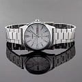 Японские мужские кварцевые часы с минеральным стекломМинеральное стеклоМинеральное стекло представляет собой искусственно выращенный минерал кварца. Такое стекло отличается особой устойчивостью к повреждениям и царапинам. Уступает по некоторым качествам сапфировому стеклу. Casio Collection MTP-V006D-7C, кварцевый механизм с высокой точностью. Корпус и браслет часов изготовлен из нержавеющей стали. Циферблат с метками в виде штрихов. Окошко даты находится в положении 3 часа. Класс водозащиты: 30 метров, позволит защитить корпус от случайных брызг или капель дождя. Стальной браслет на раскладной застёжкеРаскладная застёжкаТакой тип застёжки используется только на браслетах из металла. Она никогда не раскрывается полностью, происходит разделение на 2 и более частей. Раскладывающая застёжка снизит вероятность потери часов к минимуму..