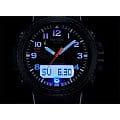 Аксессуар в спортивном стиле станет неотъемлемой частью экипировки опытного туриста, ведь он обладает полезными часовыми усложнениями. Выделяют барометр, цифровой компас, таймер обратного отсчёта, датчик измерения температуры окружающего воздуха -10°C /+60°C, высотомер с памятью данных, мировое времяМировое время Полезное часовое усложнение, отображающее время в основных городах и известных областях по всему миру, оно связано с часовыми поясами, удобно для путешественников и бизнесменов. , приём радиосигнала для настройки точного времени, хронографХронографФункция позволяет измерять отрезки времени с особой точностью: часы, минуты, секунды. Верным признаком хронографа является наличие на циферблате 3 дополнительных окошек-счётчиков., календарь. Японский кварцевый механизм получает энергию для работы от солнечной батареи – технология . Индикатор уровня заряда батареи. Минеральное стекло. Стальной безельБезельВнешний ободок, закрепляющий стекло. В спортивных часах так называется поворотное кольцо с делениями на циферблате, выполняет роль таймера – замеряет отрезки времени на шкале. Неподвижный безель – элемент декора. Однонаправленно вращающийся безель на дайверских часах позволяет фиксировать моменты погружения и выныривания на поверхность. с IP-покрытиемIP-покрытиеМетод ионного напыления. Демонстрирует повышенную устойчивость к истиранию, окислению и химическим веществам. Под воздействием высокого давления и температуры около 1500°C молекулы металла надёжно соединяются с частицами корпуса часов., устойчивым к износу. Аналоговый циферблат и дисплей со светодиодной подсветкойСветодиодная подсветкаСветодиодная или LED-подсветка обеспечивает появление яркого холодного свечения за счёт LED-элементов - маленьких лампочек. Они потребляют минимальное количество энергии, чаще всего можно встретить 1 светодиод, в нижней части циферблата.. Стрелки с подсветкой NeobriteПодсветка NeobriteИспользование светонакопительных составов на основе сульфида цинка или алюмината стронция, яркий свет можно наблюдать на протяжении 6-10 часов после «зарядки» часов около источника света.. Пластиковый ударопрочный корпусУдаропрочный корпусМеханизм заключён в корпус, выполненный из современных материалов, устойчивых к ударам, механическим повреждениям и падению с высоты: инновационный пластик, карбон, нержавеющая сталь, титан. и браслет. Водостойкость до 10 бар. Габариты: 50,5 x 47,2 x 13,3 мм.