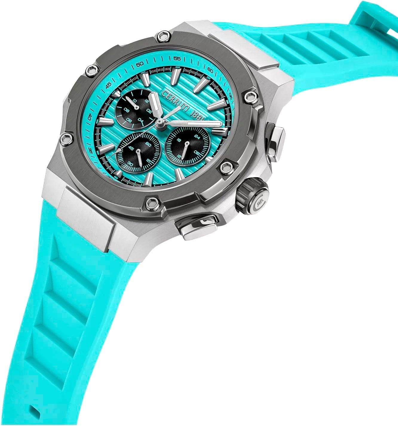 Cerruti 1881 CIWGQ0085703 — выразительные мужские часы с современным архитектурным дизайном, сочетающие спортивную мощь и итальянскую утончённость. Корпус из нержавеющей стали с фактурным шестигранным безелемБезельВнешний ободок, закрепляющий стекло. В спортивных часах так называется поворотное кольцо с делениями на циферблате, выполняет роль таймера – замеряет отрезки времени на шкале. Неподвижный безель – элемент декора. Однонаправленно вращающийся безель на дайверских часах позволяет фиксировать моменты погружения и выныривания на поверхность. с ip-покрытиемIP-покрытиеМетод ионного напыления. Демонстрирует повышенную устойчивость к истиранию, окислению и химическим веществам. Под воздействием высокого давления и температуры около 1500°C молекулы металла надёжно соединяются с частицами корпуса часов. подчёркивает индустриальный характер модели, а насыщенный циферблат с тремя счётчиками хронографаХронографФункция позволяет измерять отрезки времени с особой точностью: часы, минуты, секунды. Верным признаком хронографа является наличие на циферблате 3 дополнительных окошек-счётчиков. создаёт динамичную композицию. Контрастные стрелки и метки с люминесцентным покрытиемЛюминесцентное покрытиеПозволяет считывать показания времени в темноте. Производители наносят на стрелки, часовые индексы, безель или поверхность циферблата светонакопительный состав, дающий холодное свечение. обеспечивают превосходную читаемость, а прочное минеральное стеклоМинеральное стеклоМинеральное стекло представляет собой искусственно выращенный минерал кварца. Такое стекло отличается особой устойчивостью к повреждениям и царапинам. Уступает по некоторым качествам сапфировому стеклу. надёжно защищает циферблат. Мягкий силиконовый ремешок с интегрированным дизайном гармонирует с цветовой палитрой корпуса и обеспечивает комфортное прилегание к запястью. Cerruti 1881 — это стильный союз технологий, функциональности и узнаваемого итальянского характера, идеально подходящий для активного и уверенного мужчины.