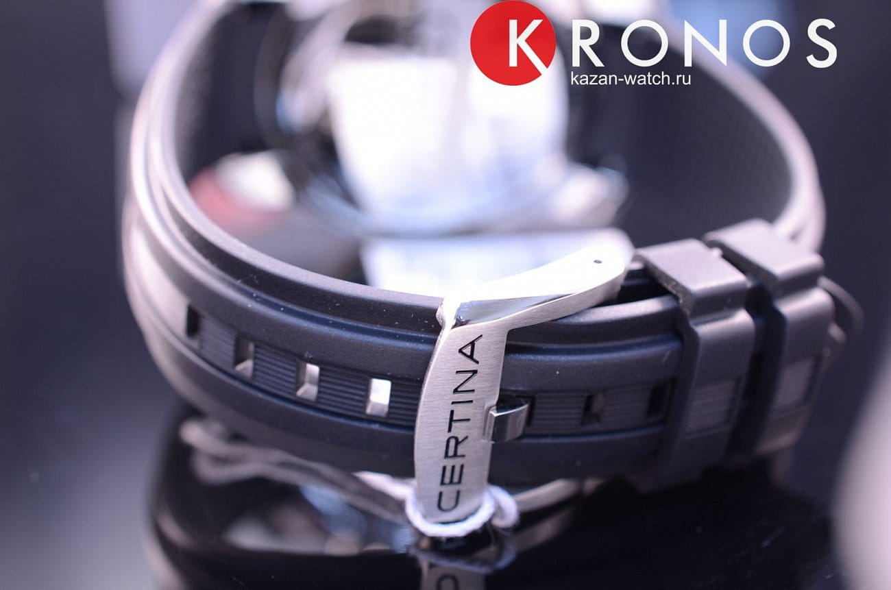 Наручные часы с каучуковым ремешком имеют крупную индикацию времени, на тёмном циферблате расположились счётчики в оригинальном оформлении. Кварцевый хронографХронографФункция позволяет измерять отрезки времени с особой точностью: часы, минуты, секунды. Верным признаком хронографа является наличие на циферблате 3 дополнительных окошек-счётчиков. разработан с реализацией технологии DS Concept DS ConceptDouble Security Concept, обозначает двойную надёжность и безупречную точность часов Certina. Двойная система защиты подразумевает обеспечение максимальной устойчивости к ударам и высоких показателей водонепроницаемости., благодаря чему модель отличается высокой ударопрочностью и водонепроницаемостью до 100 метров. Сапфировое стекло. БезельБезельВнешний ободок, закрепляющий стекло. В спортивных часах так называется поворотное кольцо с делениями на циферблате, выполняет роль таймера – замеряет отрезки времени на шкале. Неподвижный безель – элемент декора. Однонаправленно вращающийся безель на дайверских часах позволяет фиксировать моменты погружения и выныривания на поверхность. c PVD-покрытиемPVDУльтратонкое покрытие наносится в технике вакуумного напыления, сочетает в себе нитрид титана особой прочности со слоем золота или оксида хрома. Несёт в себе декоративную или защитную функцию.. Яркая люминесцентная подсветкаЛюминесцентное покрытиеПозволяет считывать показания времени в темноте. Производители наносят на стрелки, часовые индексы, безель или поверхность циферблата светонакопительный состав, дающий холодное свечение.. Секундомер, отображение даты, функция GMTGMTОтображение времени второго часового пояса.Такая функция особенно актуальна для путешественников и бизнесменов,которые общаются с людьми из разных стран,теперь вы всегда будете знать,какой час у вашего партнёра или близкого человека.. Диаметр корпуса: 42 мм.