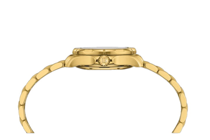 Компактный аксессуар создан по всем правилам дайверской тематики: вращающийся безельБезельВнешний ободок, закрепляющий стекло. В спортивных часах так называется поворотное кольцо с делениями на циферблате, выполняет роль таймера – замеряет отрезки времени на шкале. Неподвижный безель – элемент декора. Однонаправленно вращающийся безель на дайверских часах позволяет фиксировать моменты погружения и выныривания на поверхность., крупная индикация времени, завинчивающаяся заводная головка и задняя крышка. Стильно смотрится золотистый циферблат в сочетании с холодным блеском нержавеющей стали 316L с PVD-покрытиемPVDУльтратонкое покрытие наносится в технике вакуумного напыления, сочетает в себе нитрид титана особой прочности со слоем золота или оксида хрома. Несёт в себе декоративную или защитную функцию.. Часы оснащены швейцарским кварцевым калибром ETA F04.412 Precidrive™Precidrive™Инновационный кварцевый механизм Certina. Часы, оснащённые этим швейцарским калибром, приравниваются к точности к сертифицированным хронометрам, точность хода составляет +/-10 секунд в год., точность хода которого отмечена официальным сертификатом COSCСертификат COSCОфициальный сертификат, подтверждающий то, что часы ходят с особо высокой точностью. Для получения документа часы подвергаются тестовым испытаниям, разработанным швейцарским институтом тестирования хронометров COSC. Допустимая норма для механических часов -4/+6 секунд в день, для кварцевых моделей +/- 0,07 секунд в день.. Модель отличается максимальной водонепроницаемостью 200 метров, сапфировое стекло дополнено антибликовым покрытием. Функции: отображение даты, индикатор EOLEOLПредставляет собой систему, уведомляющую владельца часов о необходимости замены элемента питания. За 2 недели до полного разряда батарейки секундная стрелка перестаёт ходить чётко и начинает перепрыгивать на 3-4 деления.. Диаметр корпуса: 29 мм.