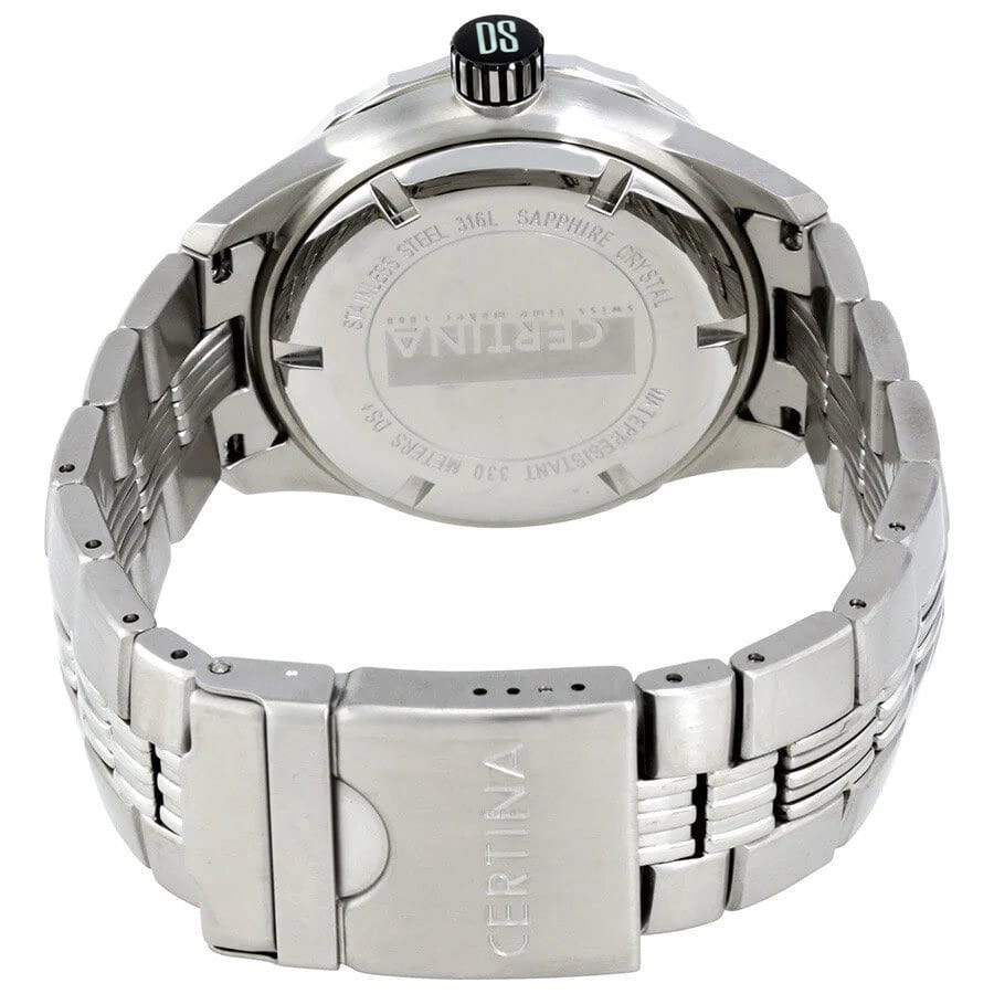Мужские швейцарские часы с сапфировым стеклом Certina DS Blue Ribbon C007.410.11.051.01, кварцевый механизм с высокой точностью. Циферблат с люминесцентным покрытиемЛюминесцентное покрытиеПозволяет считывать показания времени в темноте. Производители наносят на стрелки, часовые индексы, безель или поверхность циферблата светонакопительный состав, дающий холодное свечение. стрелок и меток, дополнен сапфировым стекломСапфировое стеклоПрочный и надёжный материал из кристалла сапфира синтетического происхождения, характеризующийся особой твёрдостью и устойчивостью к царапинам и повреждениям., устойчивым к появлению царапин и обладающее высокой прозрачностью. Корпус часов изготовлен из стали.
