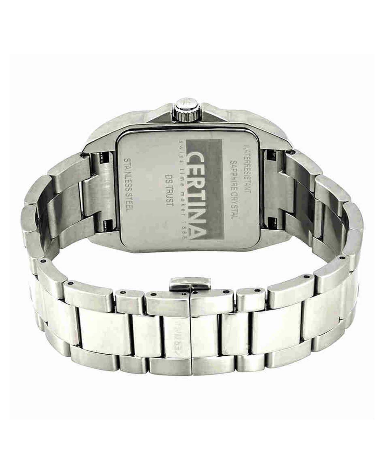Мужские швейцарские часы Certina DS Trust C0195101103700, кварцевый механизм с высокой точностью. Сапфировое стеклоСапфировое стеклоПрочный и надёжный материал из кристалла сапфира синтетического происхождения, характеризующийся особой твёрдостью и устойчивостью к царапинам и повреждениям. устойчивое к появлению царапин, обладающее высокой прозрачностью. Корпус изготовлен из нержавеющей стали. Стрелки с люминесцентным покрытиемЛюминесцентное покрытиеПозволяет считывать показания времени в темноте. Производители наносят на стрелки, часовые индексы, безель или поверхность циферблата светонакопительный состав, дающий холодное свечение.. Окошко даты находится в положении 6 часов. Класс водозащиты: 100 метров, позволит плавать, нырять и заниматься другими водными видами спорта. Стальной браслет на застёжке-бабочке с кнопкамиЗастёжка "бабочка"Такой вид застёжки дополняется предохранителями, помогающими избежать случайного раскрытия браслета. Обладают изящным исполнением. .