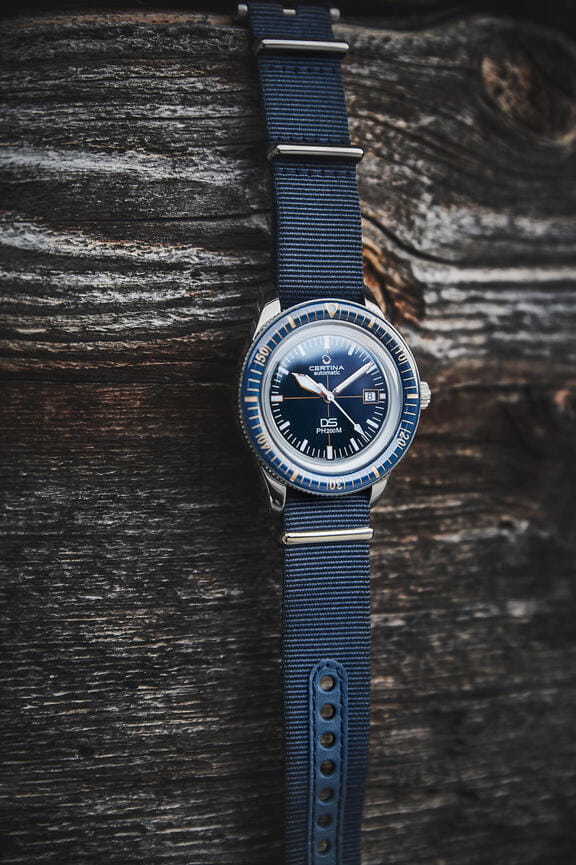 Оригинальный циферблат понравится ценителям ретро-дизайна. Уникальностью обладает не только аксессуар, но и упаковка, сделанная в виде бокса для дайвинга. Часы комплектуются автоматическим механизмом ETA Powermatic 80Powermatic 80Эксклюзивный калибр от швейцарской компании ETA с увеличенным запасом хода до 80 часов за счёт удлинённой заводной пружины. Характеризуется улучшенной системой спуска со сниженным трением. с 80-часовым запасом хода. Технология DS ConceptDS ConceptDouble Security Concept, обозначает двойную надёжность и безупречную точность часов Certina. Двойная система защиты подразумевает обеспечение максимальной устойчивости к ударам и высоких показателей водонепроницаемости.. Стекло с покрытием Nex scratchguard, устойчивым к царапинам. Вращающийся безельБезельВнешний ободок, закрепляющий стекло. В спортивных часах так называется поворотное кольцо с делениями на циферблате, выполняет роль таймера – замеряет отрезки времени на шкале. Неподвижный безель – элемент декора. Однонаправленно вращающийся безель на дайверских часах позволяет фиксировать моменты погружения и выныривания на поверхность.. Диаметр корпуса: 42,8 мм.