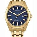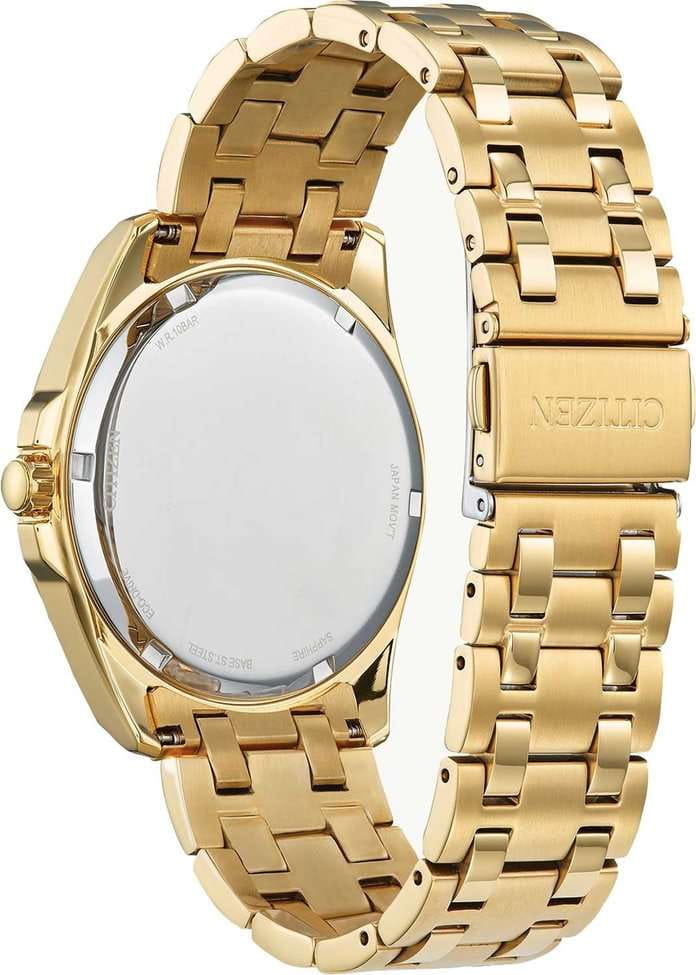 Citizen BM7532-54L — стильные японские часы для современных мужчин, сочетающие в себе высокую функциональность и элегантный внешний вид. Надежный кварцевый механизм Citizen E111 с инновационной технологией Eco-Drive обеспечивает питание от солнечной энергии и полностью избавляет от необходимости замены батарейки, а запас хода составляет до 180 дней. Корпус и браслет выполнены из нержавеющей стали с износостойким золотистым IP-покрытиеIP-покрытиеМетод ионного напыления. Демонстрирует повышенную устойчивость к истиранию, окислению и химическим веществам. Под воздействием высокого давления и температуры около 1500°C молекулы металла надёжно соединяются с частицами корпуса часов., что гарантирует долговечность и сохранение внешнего вида. Синий текстурированный циферблат с аккуратными метками и стрелками с люминесцентным покрытиемЛюминесцентное покрытиеПозволяет считывать показания времени в темноте. Производители наносят на стрелки, часовые индексы, безель или поверхность циферблата светонакопительный состав, дающий холодное свечение. надежно защищён сапфировым стекломСапфировое стеклоПрочный и надёжный материал из кристалла сапфира синтетического происхождения, характеризующийся особой твёрдостью и устойчивостью к царапинам и повреждениям., устойчивым к царапинам. Окно даты расположено в районе 3 часов, а заводная головка оснащена защитой. Часы обладают водозащитой до 100 метров, подходят для повседневного ношения и активного образа жизни. Браслет дополнен удобной раскладной застёжкойРаскладная застёжкаТакой тип застёжки используется только на браслетах из металла. Она никогда не раскрывается полностью, происходит разделение на 2 и более частей. Раскладывающая застёжка снизит вероятность потери часов к минимуму., обеспечивающей комфорт и безопасность. Размер корпуса — 41 мм, толщина — 9,4 мм, что делает модель универсальным выбором для любого случая.