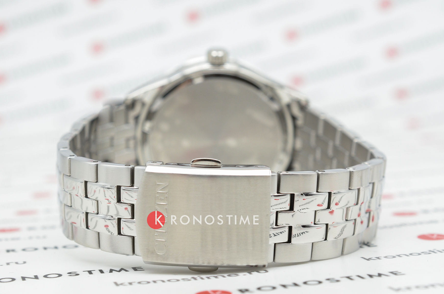 Citizen BM7560-59L — элегантные японские часы с современным дизайном, созданные для ценителей надежности и практичности. Эта модель оснащена высокоточным кварцевым механизмом и инновационной системой Eco-Drive, которая обеспечивает питание от солнечной энергии и избавляет от необходимости замены батарейки, а запас хода достигает 180 дней. Корпус и браслет выполнены из нержавеющей стали, что гарантирует прочность и долговечность изделия. Сапфировое стеклоСапфировое стеклоПрочный и надёжный материал из кристалла сапфира синтетического происхождения, характеризующийся особой твёрдостью и устойчивостью к царапинам и повреждениям. устойчиво к появлению царапин и мелких повреждений, надежно защищая синий циферблат с лаконичными часовыми индексами в виде штрихов. Центральные стрелки показывают часы, минуты и секунды, а функция индикации даты делает использование часов ещё более удобным. Стрелки с люминесцентным покрытиемЛюминесцентное покрытиеПозволяет считывать показания времени в темноте. Производители наносят на стрелки, часовые индексы, безель или поверхность циферблата светонакопительный состав, дающий холодное свечение. удобно подсвечиваются в темноте после зарядки на свету. Браслет из нержавеющей стали оснащен раскладной застёжкойРаскладная застёжкаТакой тип застёжки используется только на браслетах из металла. Она никогда не раскрывается полностью, происходит разделение на 2 и более частей. Раскладывающая застёжка снизит вероятность потери часов к минимуму., обеспечивая надежную фиксацию на руке. Водозащита уровня WR 100 позволяет не снимать часы во время плавания без погружения. Диаметр корпуса составляет 41 мм, толщина — 10 мм, благодаря чему модель отлично смотрится на запястье и подходит для повседневного ношения.