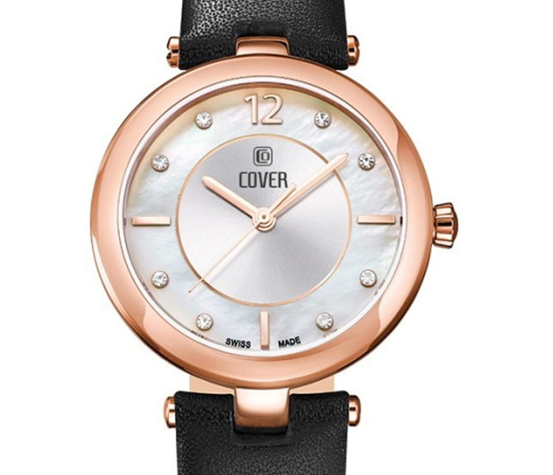 Женственные коктейльные часы COVER CO193.09 из коллекции Amelia работают на кварцевом калибре ETA. Циферблат имеет центральную область серебристого цвета с узором Sunray и белую перламутровую периферийную часть, которые защищены минеральным стекломМинеральное стеклоМинеральное стекло представляет собой искусственно выращенный минерал кварца. Такое стекло отличается особой устойчивостью к повреждениям и царапинам. Уступает по некоторым качествам сапфировому стеклу. с сапфировым напылением. В качестве часовых меток используются 8 кристаллов Swarovski, а также 3 накладных индекса и арабская цифра «12». Корпус 32 мм диаметром выполнен из нержавеющей стали с PVD-покрытиемPVDУльтратонкое покрытие наносится в технике вакуумного напыления, сочетает в себе нитрид титана особой прочности со слоем золота или оксида хрома. Несёт в себе декоративную или защитную функцию. цвета розового золота, с широким полированным безелемБезельВнешний ободок, закрепляющий стекло. В спортивных часах так называется поворотное кольцо с делениями на циферблате, выполняет роль таймера – замеряет отрезки времени на шкале. Неподвижный безель – элемент декора. Однонаправленно вращающийся безель на дайверских часах позволяет фиксировать моменты погружения и выныривания на поверхность.. Часы комплектуются черным кожаным ремешком на стандартной застёжке и имеют маркировку «Swiss Made».