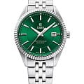 Наручные часы Cover CO208.08 из коллекции Alston — это воплощение мужской элегантности и швейцарского мастерства. Модель привлекает внимание своим безупречным дизайном и высокотехнологичным исполнением, что делает ее идеальным выбором для тех, кто ценит классику с современным акцентом. В основе работы часов лежит надежный кварцевый механизм ETA, известный своей исключительной точностью и долговечностью. Этот швейцарский калибр гарантирует стабильность хода и минимальную погрешность, а маркировка «Swiss Made» подтверждает соответствие высочайшим стандартам качества. Циферблат зеленого цвета с текстурированным узором и контрастными штрихами, защищен минеральным стекломМинеральное стеклоМинеральное стекло представляет собой искусственно выращенный минерал кварца. Такое стекло отличается особой устойчивостью к повреждениям и царапинам. Уступает по некоторым качествам сапфировому стеклу. с сапфировым напылением. Браслет из нержавеющей стали серебристого цвета, на раскладной застёжкеРаскладная застёжкаТакой тип застёжки используется только на браслетах из металла. Она никогда не раскрывается полностью, происходит разделение на 2 и более частей. Раскладывающая застёжка снизит вероятность потери часов к минимуму.. Часы Cover CO208.08 – это сочетание традиций швейцарского качества и современности.
