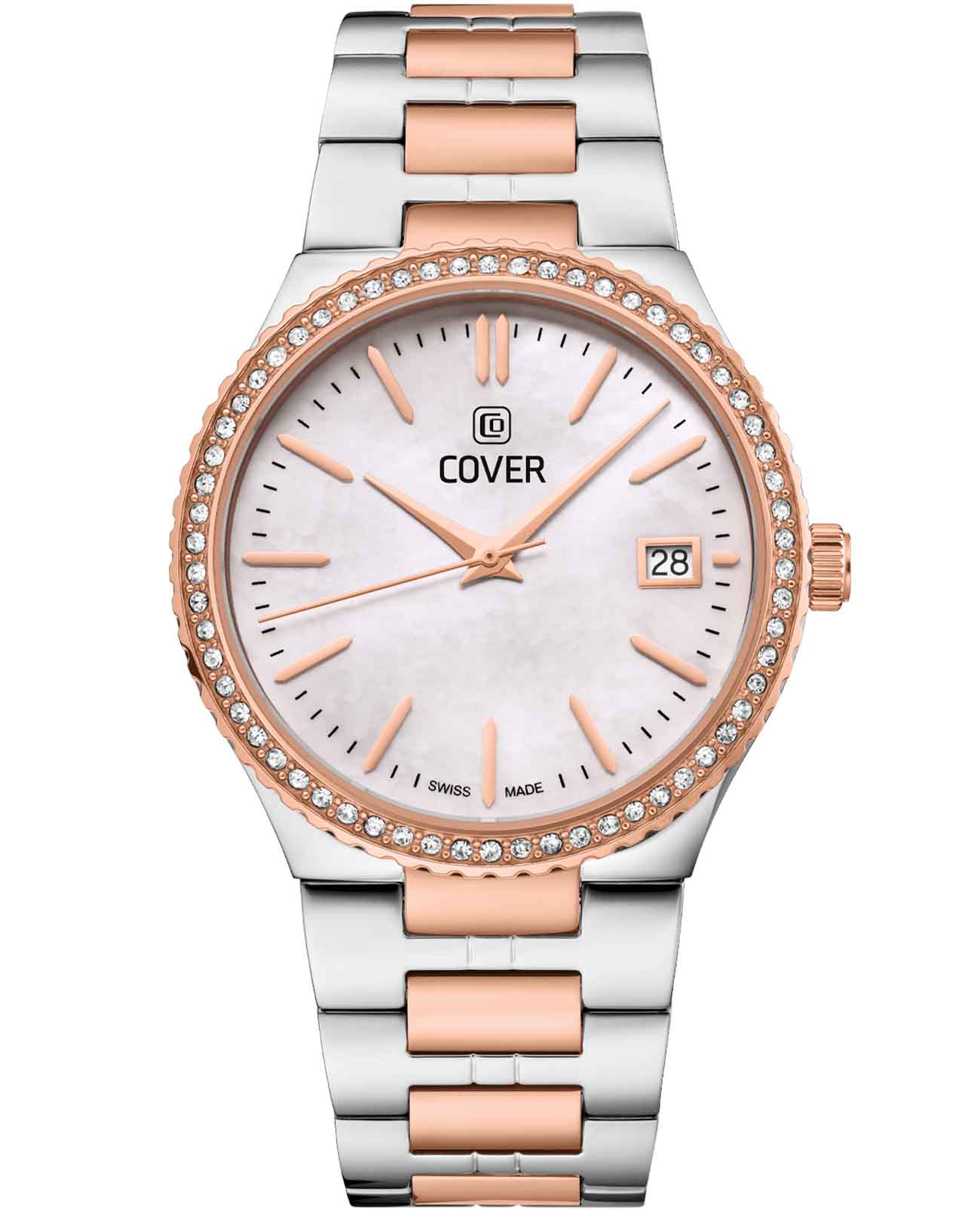 Cover Jumeira CO218.05 – элегантные женские часы, сочетающие современный дизайн и швейцарское качество. Корпус диаметром 36 мм выполнен из нержавеющей стали 316L, что придаёт модели роскошный вид и обеспечивает долговечность. БезельБезельВнешний ободок, закрепляющий стекло. В спортивных часах так называется поворотное кольцо с делениями на циферблате, выполняет роль таймера – замеряет отрезки времени на шкале. Неподвижный безель – элемент декора. Однонаправленно вращающийся безель на дайверских часах позволяет фиксировать моменты погружения и выныривания на поверхность. с PVD-покрытиемPVDУльтратонкое покрытие наносится в технике вакуумного напыления, сочетает в себе нитрид титана особой прочности со слоем золота или оксида хрома. Несёт в себе декоративную или защитную функцию. украшен кристаллами, добавляя изысканности и блеска, а поверхность перламутрового циферблата защищена сапфировым стекломСапфировое стеклоПрочный и надёжный материал из кристалла сапфира синтетического происхождения, характеризующийся особой твёрдостью и устойчивостью к царапинам и повреждениям., устойчивым к царапинам. Часы оснащены швейцарским кварцевым механизмом, обеспечивающим точный ход и надёжность. Функциональность дополняется окошком даты, расположенным на позиции «3 часа». Браслет из нержавеющей стали с частичным PVD-покрытиемPVDУльтратонкое покрытие наносится в технике вакуумного напыления, сочетает в себе нитрид титана особой прочности со слоем золота или оксида хрома. Несёт в себе декоративную или защитную функцию. оснащён раскладной застёжкойРаскладная застёжкаТакой тип застёжки используется только на браслетах из металла. Она никогда не раскрывается полностью, происходит разделение на 2 и более частей. Раскладывающая застёжка снизит вероятность потери часов к минимуму., обеспечивающей удобную и надёжную фиксацию на запястье. Водонепроницаемость 50 метров (5 ATM) позволяет использовать часы в повседневной жизни, защищая их от случайных брызг и дождя.