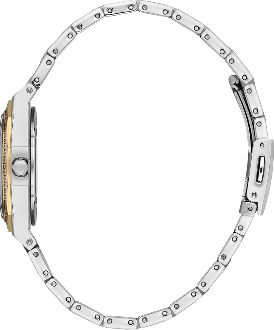 Женские кварцевые часы Daniel Klein — это роскошный аксессуар для истинной леди. Корпус диаметром 33 мм выполнен из нержавеющей стали. БезельБезельВнешний ободок, закрепляющий стекло. В спортивных часах так называется поворотное кольцо с делениями на циферблате, выполняет роль таймера – замеряет отрезки времени на шкале. Неподвижный безель – элемент декора. Однонаправленно вращающийся безель на дайверских часах позволяет фиксировать моменты погружения и выныривания на поверхность. с IP-покрытиемIP-покрытиеМетод ионного напыления. Демонстрирует повышенную устойчивость к истиранию, окислению и химическим веществам. Под воздействием высокого давления и температуры около 1500°C молекулы металла надёжно соединяются с частицами корпуса часов. инкрустирован кристаллами. Циферблат серебристого цвета оформлен штрихами, стрелками и узором в клетку с фирменным логотипом Daniel Klein. Окошко даты расположено в положении 3 часов. Стрелки и метки с люминесцентным покрытиемЛюминесцентное покрытиеПозволяет считывать показания времени в темноте. Производители наносят на стрелки, часовые индексы, безель или поверхность циферблата светонакопительный состав, дающий холодное свечение., обеспечивающим хорошую читаемость в темноте. Циферблат защищён минеральным стекломМинеральное стеклоМинеральное стекло представляет собой искусственно выращенный минерал кварца. Такое стекло отличается особой устойчивостью к повреждениям и царапинам. Уступает по некоторым качествам сапфировому стеклу.. Часы оснащены стальным браслетом с частичным IP-покрытиемIP-покрытиеМетод ионного напыления. Демонстрирует повышенную устойчивость к истиранию, окислению и химическим веществам. Под воздействием высокого давления и температуры около 1500°C молекулы металла надёжно соединяются с частицами корпуса часов. на раскладной застёжкеРаскладная застёжкаТакой тип застёжки используется только на браслетах из металла. Она никогда не раскрывается полностью, происходит разделение на 2 и более частей. Раскладывающая застёжка снизит вероятность потери часов к минимуму.. Водонепроницаемость 30 м позволяет использовать часы в повседневных условиях. Идеальный выбор для тех, кто ценит турецкое качество и элегантный дизайн.