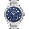 Мужские кварцевые часы-хронограф Daniel Klein — это стильный и функциональный аксессуар. Корпус диаметром 42 мм выполнен из нержавеющей стали. Циферблат синего цвета выполнен по технологии Sunray («солнечные лучи») и оформлен штрихами, стрелками и тремя субциферблатами хронографа. Присутствуют индикаторы 24-часового формата времени. Окошко даты расположено между 4 и 5 часами. Стрелки и метки с люминесцентным покрытиемЛюминесцентное покрытиеПозволяет считывать показания времени в темноте. Производители наносят на стрелки, часовые индексы, безель или поверхность циферблата светонакопительный состав, дающий холодное свечение., обеспечивающим хорошую читаемость в темноте. Циферблат защищён минеральным стекломМинеральное стеклоМинеральное стекло представляет собой искусственно выращенный минерал кварца. Такое стекло отличается особой устойчивостью к повреждениям и царапинам. Уступает по некоторым качествам сапфировому стеклу.. Заводная головка рифлёная, с защитой. Часы оснащены стальным браслетом на раскладной застёжкеРаскладная застёжкаТакой тип застёжки используется только на браслетах из металла. Она никогда не раскрывается полностью, происходит разделение на 2 и более частей. Раскладывающая застёжка снизит вероятность потери часов к минимуму.. Водонепроницаемость 50 м позволяет использовать часы в повседневных условиях. Идеальный выбор для тех, кто ценит турецкое качество и универсальный дизайн.
