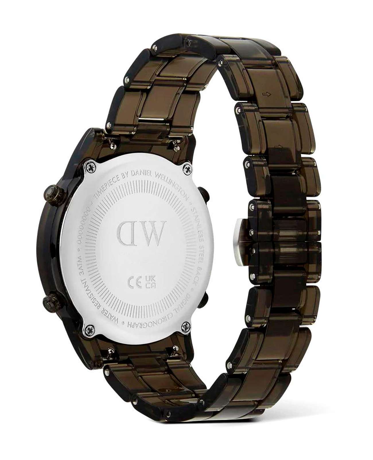 Мужские наручные часы Daniel Wellington из коллекции Retro Digital с модельным номером DW00100765 сочетают в себе современный дизайн и практичность. Модель обладает корпусом диаметром 42 мм, изготовленным из нержавеющей стали и экологически чистого пластика G850. Браслет выполнен из прозрачного серого биопластика на застёжке «бабочка» с кнопкамиЗастёжка "бабочка"Такой вид застёжки дополняется предохранителями, помогающими избежать случайного раскрытия браслета. Обладают изящным исполнением. , обеспечивающей комфортное ношение. Часы работают на кварцевом механизме, питание которого осуществляется от батарейки, гарантируя точность хода . Цифровой дисплей дополнен функциями хронографаХронографФункция позволяет измерять отрезки времени с особой точностью: часы, минуты, секунды. Верным признаком хронографа является наличие на циферблате 3 дополнительных окошек-счётчиков., таймераТаймерОтсчитывает секунды в обратном направлении в заданном интервале времени. и будильникаБудильникБуди́льник — часы, в заданный момент времени подающие звуковой, световой и/или в редких случаях другой сигнал., что делает их практичным выбором для активного образа жизни. Водонепроницаемость модели составляет 30 WR / 3 ATM, что позволяет использовать их при мытье рук или в дождь, но не подходит для плавания. Для защиты циферблата используется прочное органическое стекло, устойчивое к царапинам и механическим повреждениям. Простой и современный дизайн этих часов делает их идеальным аксессуаром для повседневной носки, сохраняя баланс между функциональностью и элегантностью .