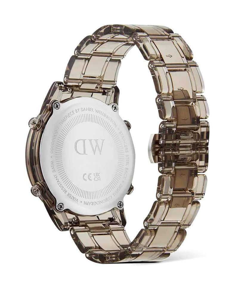 Наручные часы Daniel Wellington Retro Digital DW00100766 представляют собой стильный аксессуар с ретро дизайном. Модель обладает круглым корпусом диаметром 42 мм, выполненным из экологичного пластика и нержавеющей стали, что обеспечивает прочность и устойчивость к внешним воздействиям . Цифровой черный циферблат подчеркивает современный вид модели и оснащен функцией хронографаХронографФункция позволяет измерять отрезки времени с особой точностью: часы, минуты, секунды. Верным признаком хронографа является наличие на циферблате 3 дополнительных окошек-счётчиков. . Ремешок выполнен из прозрачного биопластика на застёжке «бабочка» с кнопкамиЗастёжка "бабочка"Такой вид застёжки дополняется предохранителями, помогающими избежать случайного раскрытия браслета. Обладают изящным исполнением. , гарантирующей комфортное ношение . Часы работают на кварцевом механизме с цифровым дисплеем, поддерживающим такие функции, как секундомерСекундомерСекундоме́р — прибор, способный измерять интервалы времени с точностью до долей секунды., таймерТаймерОтсчитывает секунды в обратном направлении в заданном интервале времени., будильникБудильникБуди́льник — часы, в заданный момент времени подающие звуковой, световой и/или в редких случаях другой сигнал. и автоматический календарь, что делает их практичным выбором для повседневного использования . Для защиты циферблата используется органическое стекло. Водонепроницаемость часов составляет 30 метров / 3 ATM, что позволяет использовать их при мытье рук или в дождь, но не рекомендуется для плавания . Простой дизайн этих часов делает их универсальным аксессуаром, сохраняющим баланс между функциональностью и элегантностью .