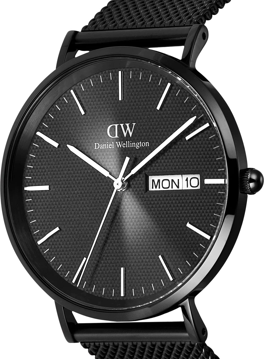 Daniel Wellington — минималистичные мужские часы, сочетающие современную элегантность и скандинавскую строгость. Круглый корпус диаметром 40 мм выполнен из нержавеющей стали с PVD-покрытиемPVDУльтратонкое покрытие наносится в технике вакуумного напыления, сочетает в себе нитрид титана особой прочности со слоем золота или оксида хрома. Несёт в себе декоративную или защитную функцию. с полированной поверхностью, акцентируя чистоту линий.