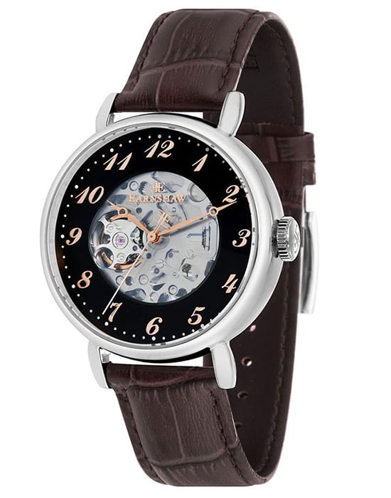 Мужские английские механические часы-скелетоны Earnshaw ES-8810-03, механический механизм (автоматический калибр) с высокой точностью. Класс водозащиты: 50 метров, позволит защитить корпус от случайных брызг или капель дождя. Корпус часов изготовлен из стали, цвета.