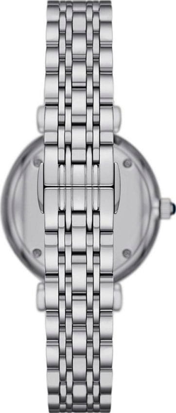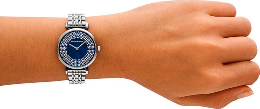 Женские наручные часы Emporio Armani AR11627 - это воплощение элегантности и современного стиля на вашем запястье. Эти часы – идеальный аксессуар для женщины, ценящей изысканность в каждой детали. Кварцевый механизм с высокой точностью. Корпус часов изготовлен из нержавеющей стали, диаметром 32 мм. Циферблат с метками в виде штрихов выполнен по технологии Sunray (солнечные лучи) и украшен кристаллами. Задняя крышка крепится на 4-х винтах. Рифленая заводная головка. Акцент сделан как на необычном оформлении циферблата, так и браслета. Минеральное стеклоМинеральное стеклоМинеральное стекло представляет собой искусственно выращенный минерал кварца. Такое стекло отличается особой устойчивостью к повреждениям и царапинам. Уступает по некоторым качествам сапфировому стеклу. устойчиво к образованию царапин. Стальной браслет на застёжке-бабочке с кнопкамиЗастёжка "бабочка"Такой вид застёжки дополняется предохранителями, помогающими избежать случайного раскрытия браслета. Обладают изящным исполнением. обеспечивает комфортное ношение. Водозащита 30 метров позволит защитить корпус от случайных брызг или капель дождя.