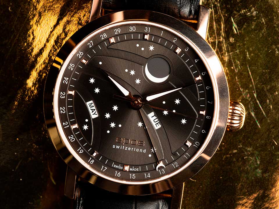 Швейцарские мужские механические часы Epos Big Moon 3440.322.24.14.25