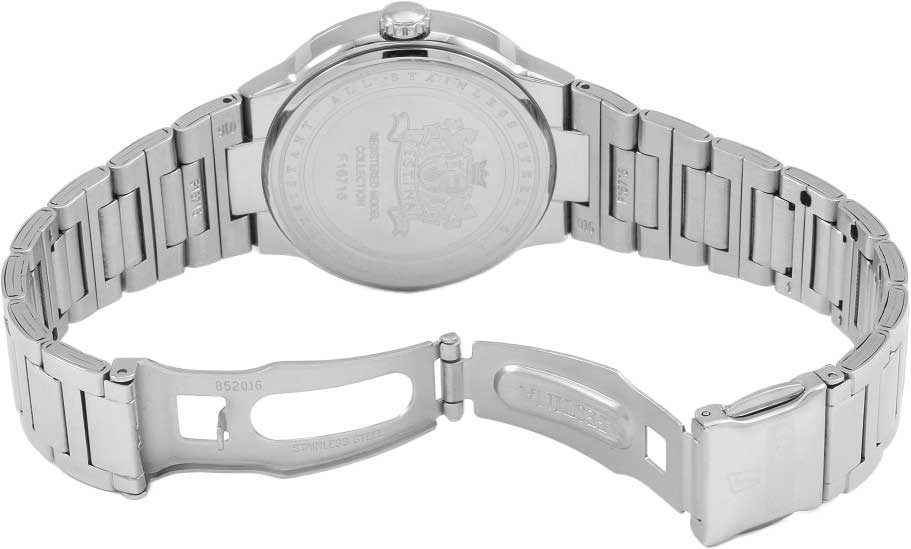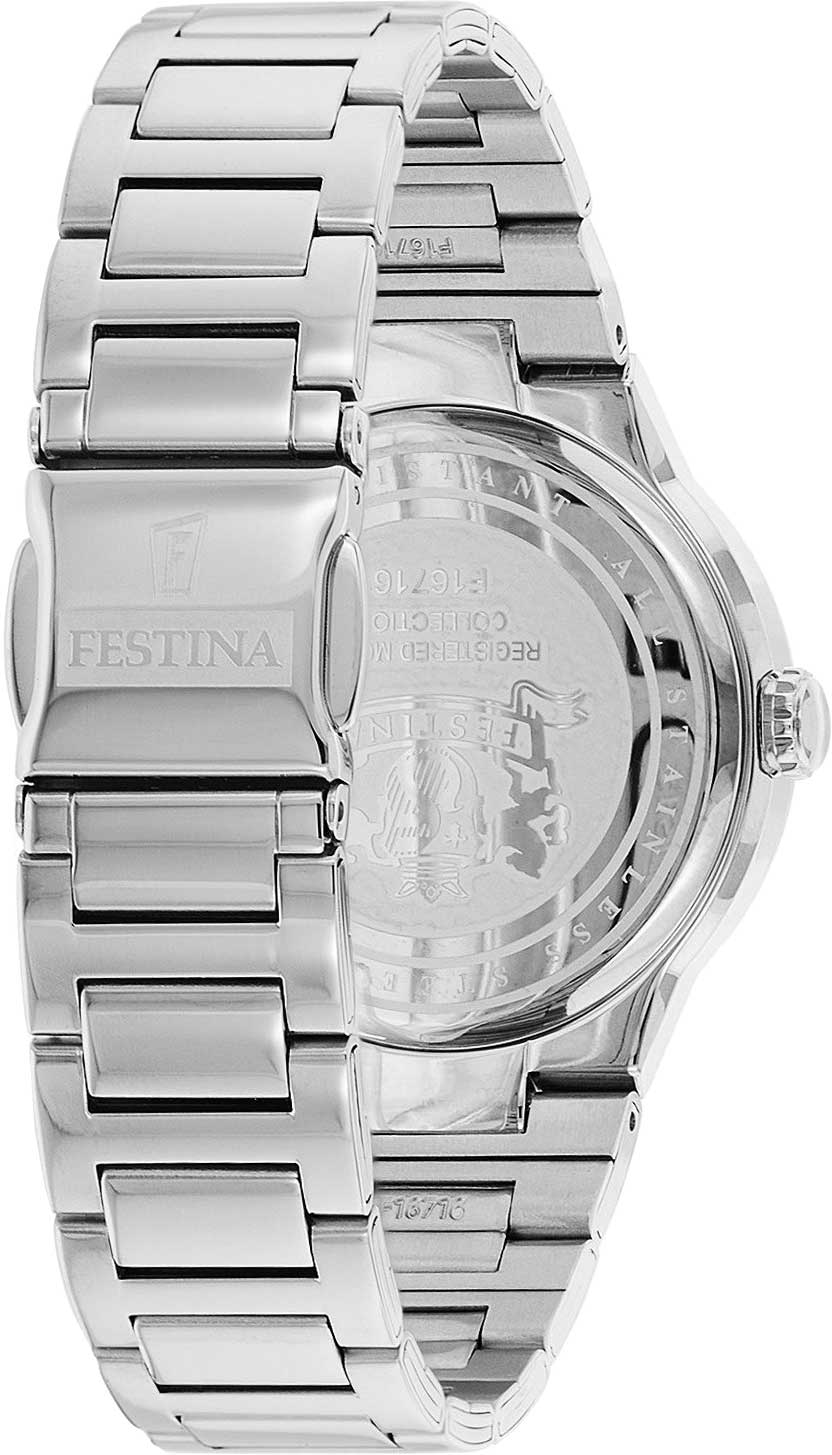 Festina F16716/1 — это идеальный выбор для современных, энергичных девушек, которые ценят не только стиль, но и функциональность. Эти женские часы выделяются ярким дизайном, способным подчеркнуть индивидуальность и завершить любой образ — от спортивного до повседневного. Надёжный кварцевый механизм обеспечивает высокую точность хода и не требует частого обслуживания. Прочное минеральное стеклоМинеральное стеклоМинеральное стекло представляет собой искусственно выращенный минерал кварца. Такое стекло отличается особой устойчивостью к повреждениям и царапинам. Уступает по некоторым качествам сапфировому стеклу. устойчиво к царапинам и обладает отличной прозрачностью, позволяя долго сохранять привлекательный внешний вид циферблата. Водозащита 50 метров (5 ATM) позволяет не беспокоиться о случайных брызгах воды или дожде. Корпус изготовлен из нержавеющей стали, что гарантирует долговечность и устойчивость к коррозии. Удобный браслет с раскладной застёжкойРаскладная застёжкаТакой тип застёжки используется только на браслетах из металла. Она никогда не раскрывается полностью, происходит разделение на 2 и более частей. Раскладывающая застёжка снизит вероятность потери часов к минимуму. плотно фиксируется на запястье и добавляет комфорта при носке.