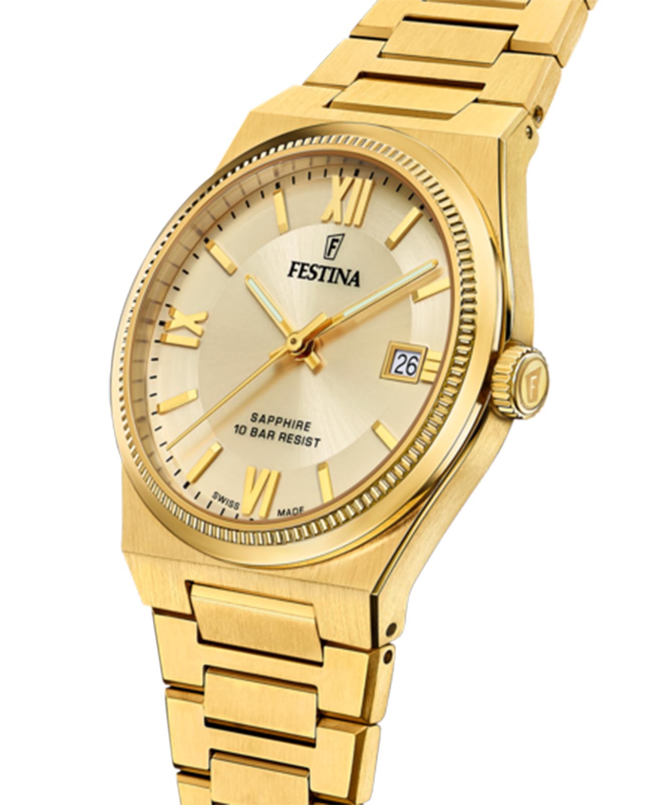 Мужские наручные часы Festina F20038/2. Кварцевый механизм с высокой точностью. Сапфировое стеклоСапфировое стеклоПрочный и надёжный материал из кристалла сапфира синтетического происхождения, характеризующийся особой твёрдостью и устойчивостью к царапинам и повреждениям. устойчивое к появлению царапин, обладающее высокой прозрачностью. Класс водозащиты: 100 метров, позволит плавать, нырять и заниматься другими водными видами спорта. Корпус и браслет часов изготовлены из нержавеющей стали с IP-покрытиемIP-покрытиеМетод ионного напыления. Демонстрирует повышенную устойчивость к истиранию, окислению и химическим веществам. Под воздействием высокого давления и температуры около 1500°C молекулы металла надёжно соединяются с частицами корпуса часов.. Стальной браслет застёжке-бабочке. Стрелки с люминесцентным покрытиемЛюминесцентное покрытиеПозволяет считывать показания времени в темноте. Производители наносят на стрелки, часовые индексы, безель или поверхность циферблата светонакопительный состав, дающий холодное свечение.. Окошко даты находится в положении 3 часа.
