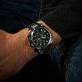 Часы-хронографХронографФункция позволяет измерять отрезки времени с особой точностью: часы, минуты, секунды. Верным признаком хронографа является наличие на циферблате 3 дополнительных окошек-счётчиков.. Кварцевый механизм с высокой точностью. Минеральное стеклоМинеральное стеклоМинеральное стекло представляет собой искусственно выращенный минерал кварца. Такое стекло отличается особой устойчивостью к повреждениям и царапинам. Уступает по некоторым качествам сапфировому стеклу. устойчивое к появлению царапин, обладающее высокой прозрачностью. Класс водозащиты: 100 метров, позволит плавать, нырять и заниматься другими водными видами спорта. Стрелки и метки с люминесцентным покрытиемЛюминесцентное покрытиеПозволяет считывать показания времени в темноте. Производители наносят на стрелки, часовые индексы, безель или поверхность циферблата светонакопительный состав, дающий холодное свечение.. Корпус часов изготовлен из нержавеющей стали. Браслет с раскладной застёжкойРаскладная застёжкаТакой тип застёжки используется только на браслетах из металла. Она никогда не раскрывается полностью, происходит разделение на 2 и более частей. Раскладывающая застёжка снизит вероятность потери часов к минимуму..