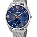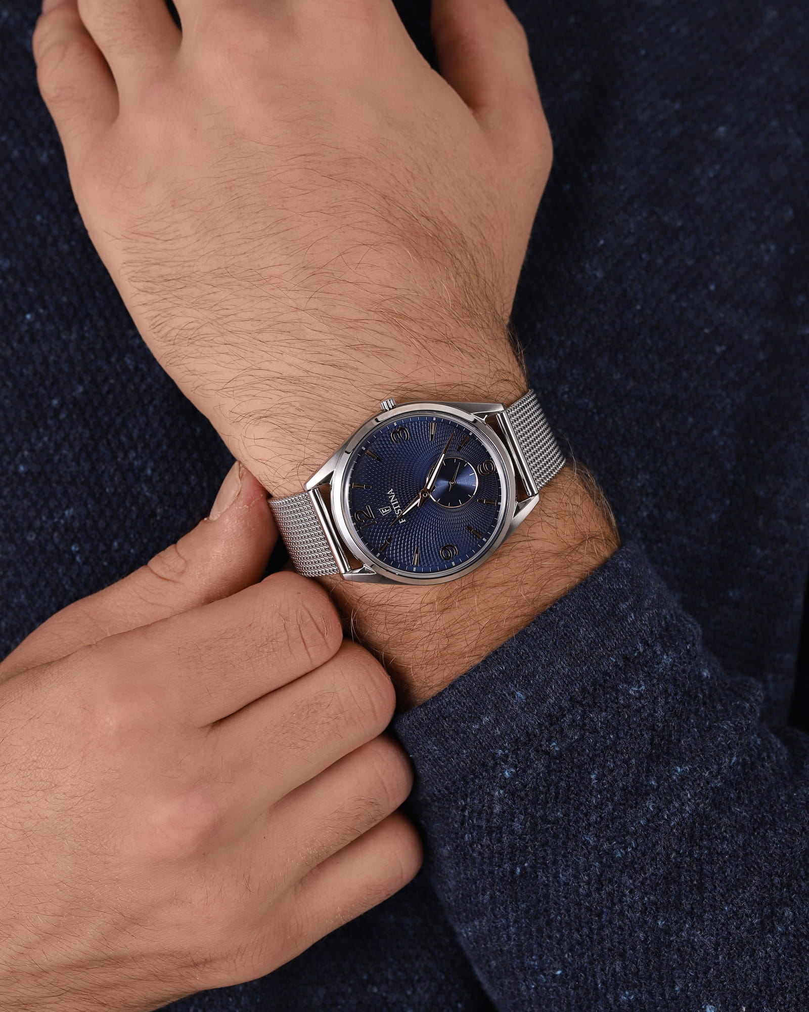 Яркий стиль и функциональность этих часов придутся по душе каждому. циферблат защищен минеральным стекломМинеральное стеклоМинеральное стекло представляет собой искусственно выращенный минерал кварца. Такое стекло отличается особой устойчивостью к повреждениям и царапинам. Уступает по некоторым качествам сапфировому стеклу.. Кварцевый механизм с высокой точностью. Метки украшены кристаллами. Класс водозащиты: 30 метров, позволит защитить корпус от капель дождя. Корпус часов изготовлен из нержавеющей стали. Циферблат с люминесцентным покрытиемЛюминесцентное покрытиеПозволяет считывать показания времени в темноте. Производители наносят на стрелки, часовые индексы, безель или поверхность циферблата светонакопительный состав, дающий холодное свечение. стрелок. Удобный и надежный стальной браслет миланского плетения с регулируемой застежкой.
