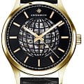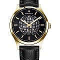 Часы Greenwich GW 056.21.31 из коллекции Globe — элегантная мужская модель, сочетающая изысканный дизайн и высокую функциональность. Корпус диаметром 43 мм выполнен из нержавеющей стали с PVD-покрытиемPVDУльтратонкое покрытие наносится в технике вакуумного напыления, сочетает в себе нитрид титана особой прочности со слоем золота или оксида хрома. Несёт в себе декоративную или защитную функцию. жёлтого золота. Скелетонизированный циферблат с оригинальным элементом в виде глобуса защищён минеральным стекломМинеральное стеклоМинеральное стекло представляет собой искусственно выращенный минерал кварца. Такое стекло отличается особой устойчивостью к повреждениям и царапинам. Уступает по некоторым качествам сапфировому стеклу., устойчивым к царапинам.