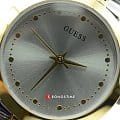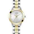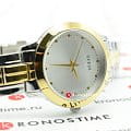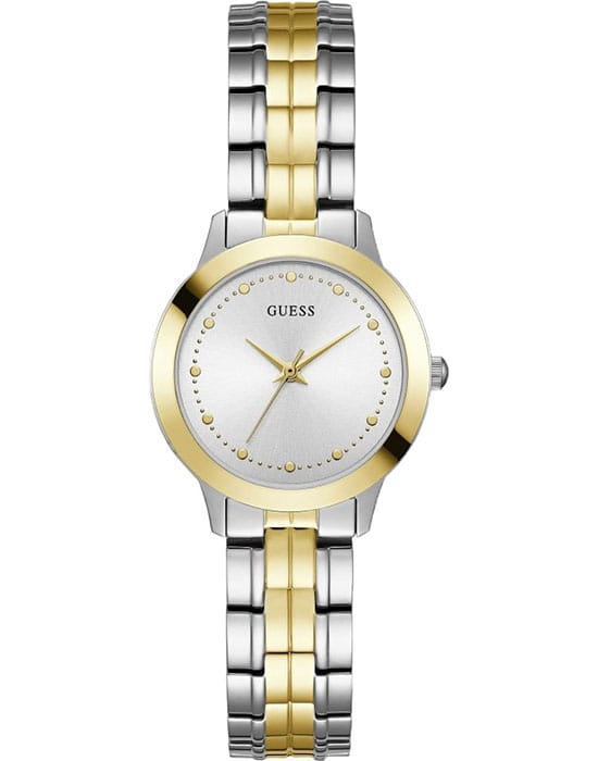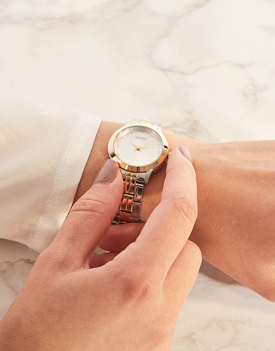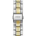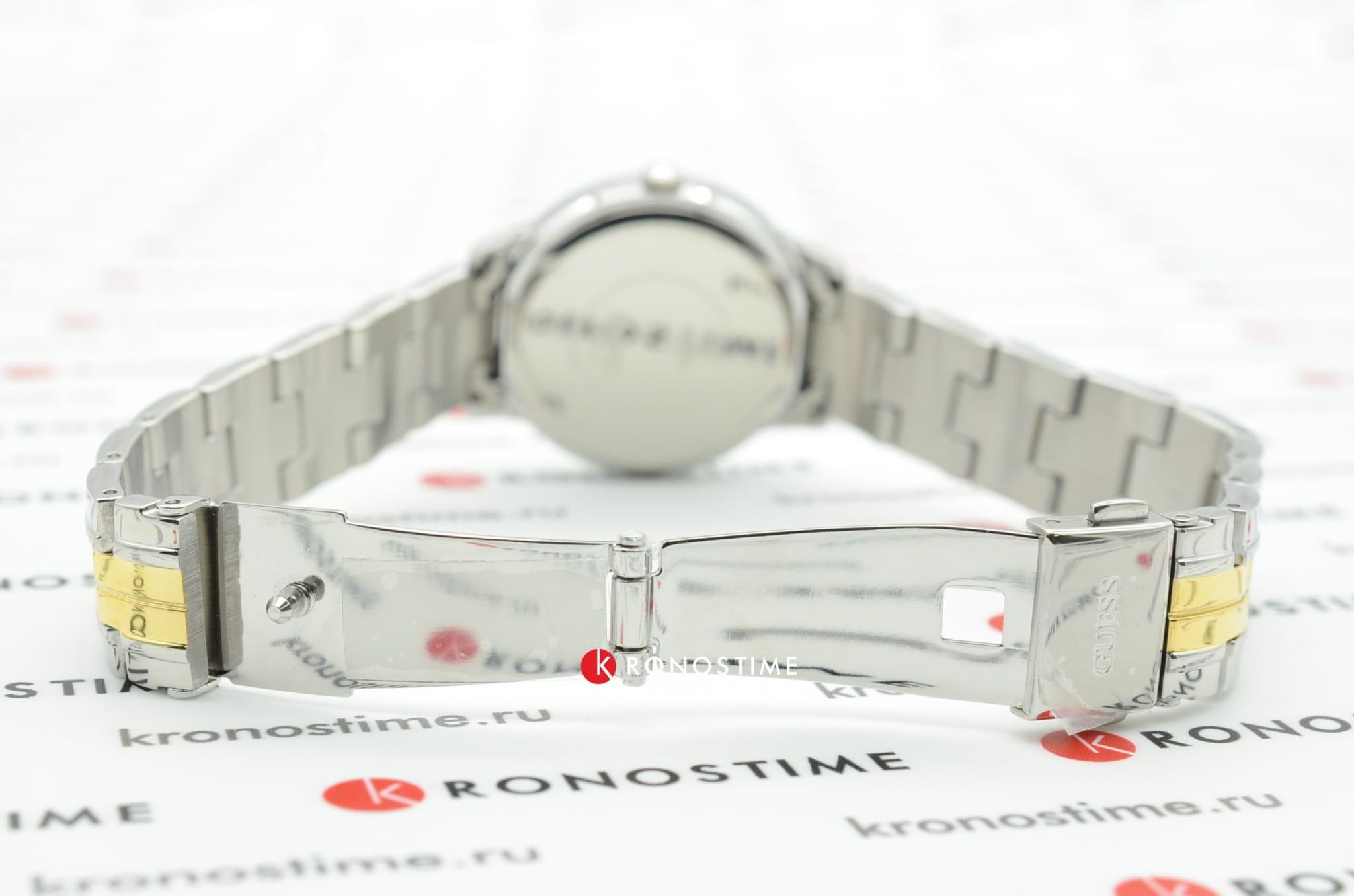 Серебристый компактный циферблат не имеет ни одной лишней детали, присутствуют лишь стрелки и оригинальная часовая разметка. Необычным оформлением отличается и браслет, для изготовления которого была использована нержавеющая сталь 316L. Кварцевый механизм работает от батарейки, имеющей продолжительный срок службы. Частичное IP-покрытиеIP-покрытиеМетод ионного напыления. Демонстрирует повышенную устойчивость к истиранию, окислению и химическим веществам. Под воздействием высокого давления и температуры около 1500°C молекулы металла надёжно соединяются с частицами корпуса часов. золотистого цвета. Минеральное стекло устойчиво к образованию царапин. Водозащита до 3 бар. Диаметр корпуса: 30 мм.