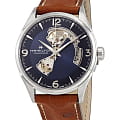 Мужские часы-скелетоны Hamilton Jazzmaster Open Heart Auto H32705041 с автоматическим механизмом Н-10. Корпус часов изготовлен из нержавеющей стали. Стрелки и метки с люминесцентным покрытиемЛюминесцентное покрытиеПозволяет считывать показания времени в темноте. Производители наносят на стрелки, часовые индексы, безель или поверхность циферблата светонакопительный состав, дающий холодное свечение.. Сапфировое стеклоСапфировое стеклоПрочный и надёжный материал из кристалла сапфира синтетического происхождения, характеризующийся особой твёрдостью и устойчивостью к царапинам и повреждениям. с антибликовым покрытием. Практичный кожаный ремешок с раскладной застёжкойРаскладная застёжкаТакой тип застёжки используется только на браслетах из металла. Она никогда не раскрывается полностью, происходит разделение на 2 и более частей. Раскладывающая застёжка снизит вероятность потери часов к минимуму.. Уровень влагозащиты: 50 метров, позволит защитить корпус от случайных брызг или капель дождя.
