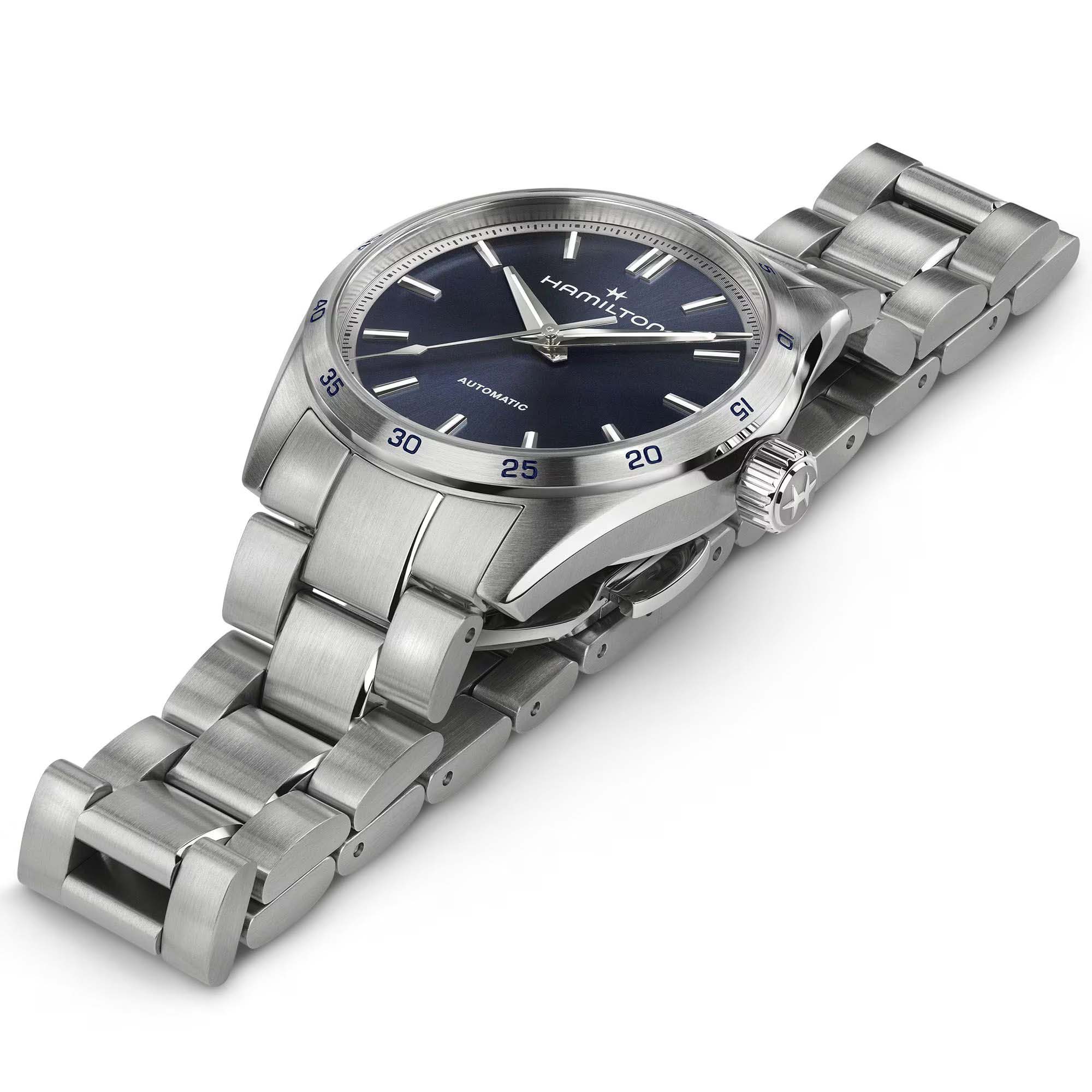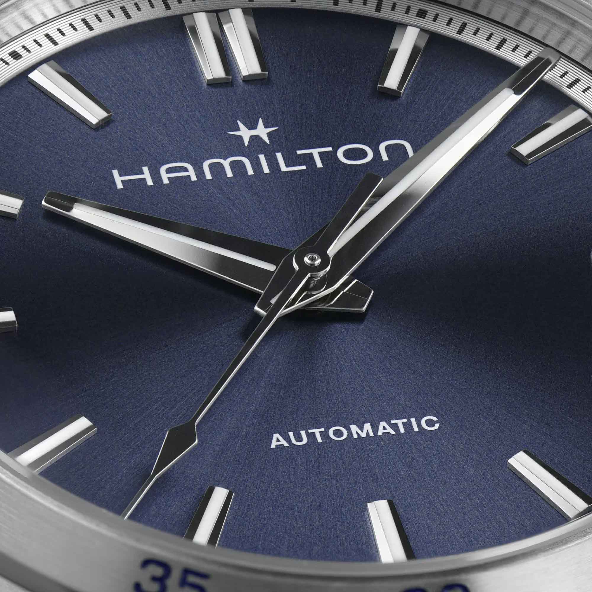 Модели из линии Jazzmaster Performer, привлекающие внимание ярким дизайном в стиле спортивный шик, сочетают в себе функциональность и эстетичность. Часы Jazzmaster Performer Automatic оснащены автоматическим механизмом H-10 с 80-часовым запасом хода. Модель в корпусе из нержавеющей стали диаметром 34 мм имеет лаконичный синий циферблат из нержавеющей стали. Сапфировое стеклоСапфировое стеклоПрочный и надёжный материал из кристалла сапфира синтетического происхождения, характеризующийся особой твёрдостью и устойчивостью к царапинам и повреждениям. с антибликовым покрытием. Стальной браслет на застёжке-бабочке с кнопкамиЗастёжка "бабочка"Такой вид застёжки дополняется предохранителями, помогающими избежать случайного раскрытия браслета. Обладают изящным исполнением. . Стрелки и метки с люминесцентным покрытиемЛюминесцентное покрытиеПозволяет считывать показания времени в темноте. Производители наносят на стрелки, часовые индексы, безель или поверхность циферблата светонакопительный состав, дающий холодное свечение..