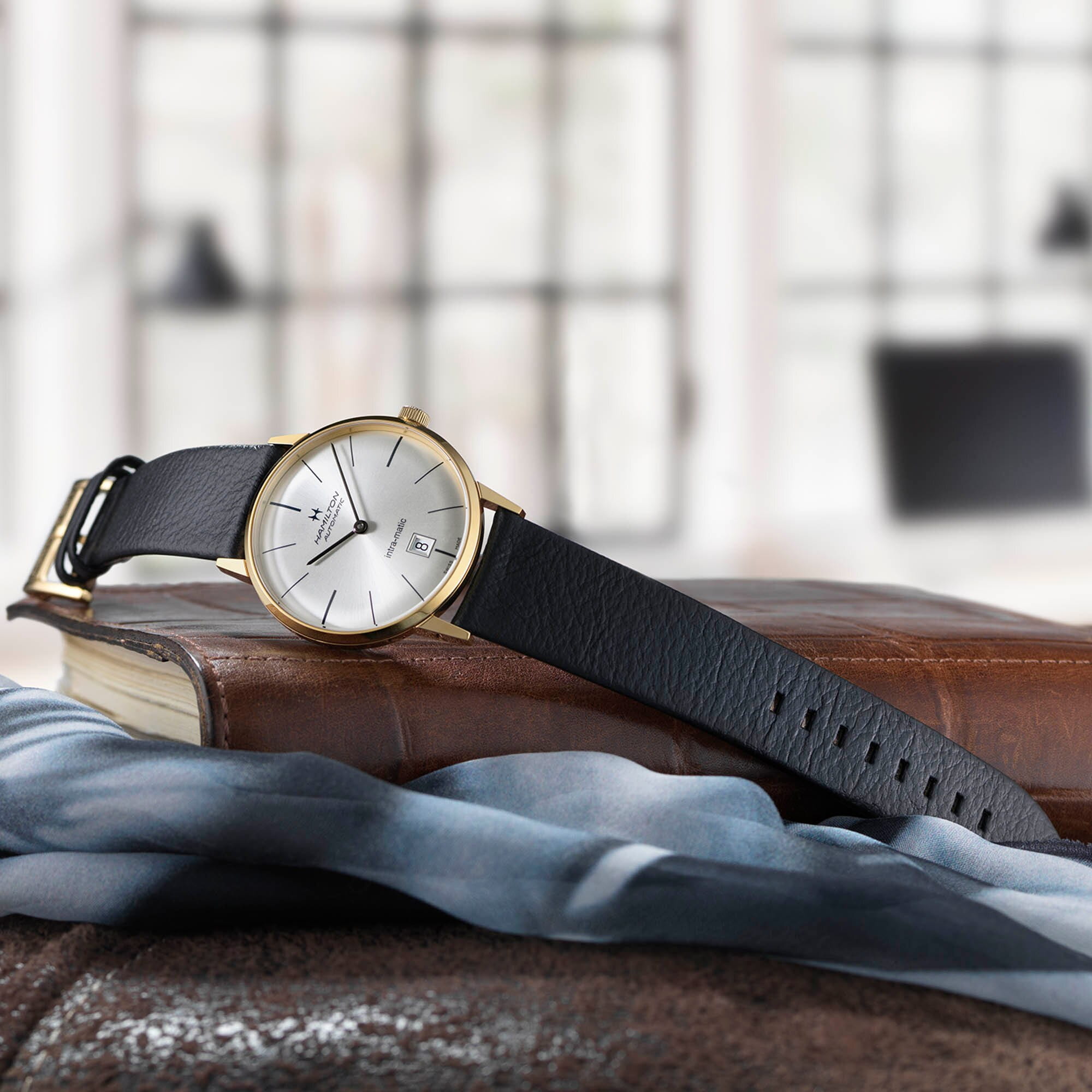 Мужские механические швейцарские часы Hamilton American Classic Intra-Matic Auto H38475751, механический механизм (автоматический калибр) с высокой точностью. Сапфировое стекло устойчивое к появлению царапин, обладающее высокой прозрачностью. Класс водозащиты: 50 метров, позволит защитить корпус от случайных брызг или капель дождя. Корпус часов изготовлен из стали, золотистого цвета.