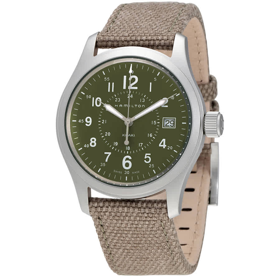 Мужские часы Hamilton Khaki Field Quartz H68201963 с надежным кварцевым механизмом. Корпус часов выполнен из нержавеющей стали. Практичный текстильный ремешок на стандартной застежке. Сапфировое стеклоСапфировое стеклоПрочный и надёжный материал из кристалла сапфира синтетического происхождения, характеризующийся особой твёрдостью и устойчивостью к царапинам и повреждениям. с антибликовым покрытием. Уровень влагозащиты: 100 метров, позволит плавать, нырять и заниматься другими водными видами спорта. Окошко даты находится в положении 3 часа. Стрелки и метки с люминесцентным покрытиемЛюминесцентное покрытиеПозволяет считывать показания времени в темноте. Производители наносят на стрелки, часовые индексы, безель или поверхность циферблата светонакопительный состав, дающий холодное свечение..