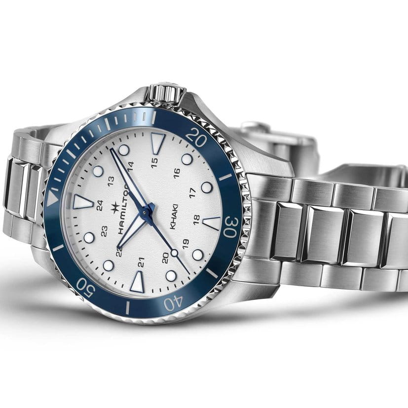 Мужские швейцарские часы Hamilton Khaki Navy Scuba Quartz H82231150, кварцевый механизм с высокой точностью. Сапфировое стеклоСапфировое стеклоПрочный и надёжный материал из кристалла сапфира синтетического происхождения, характеризующийся особой твёрдостью и устойчивостью к царапинам и повреждениям. устойчивое к появлению царапин, обладающее высокой прозрачностью. Класс водозащиты: 100 метров, позволит плавать, нырять и заниматься другими водными видами спорта. Корпус часов изготовлен из нержавеющей стали. Стальной браслет на раскладной застёжкеРаскладная застёжкаТакой тип застёжки используется только на браслетах из металла. Она никогда не раскрывается полностью, происходит разделение на 2 и более частей. Раскладывающая застёжка снизит вероятность потери часов к минимуму..