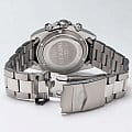 Часы оснащены функцией хронографаХронографФункция позволяет измерять отрезки времени с особой точностью: часы, минуты, секунды. Верным признаком хронографа является наличие на циферблате 3 дополнительных окошек-счётчиков. и тахиметрТахиметрРазмеченная шкала, располагается на ободке или безеле часов. Тахиметр позволяет рассчитать скорость на определённом участке пути, расстояние измеряется в километрах или милях., что позволяет точно измерять скорость и время различных событий. Циферблат защищен прочным минеральным стекломМинеральное стеклоМинеральное стекло представляет собой искусственно выращенный минерал кварца. Такое стекло отличается особой устойчивостью к повреждениям и царапинам. Уступает по некоторым качествам сапфировому стеклу., обеспечивающим высокую устойчивость к царапинам. Завинчивающаяся рифленая заводная головка с защитой гарантирует надежную герметизацию механизма, а завинчивающаяся задняя крышка добавляет дополнительную защиту от внешних воздействий.