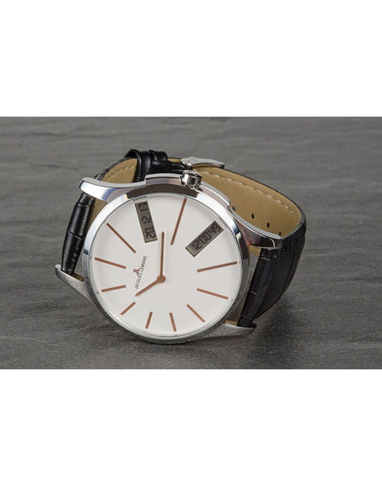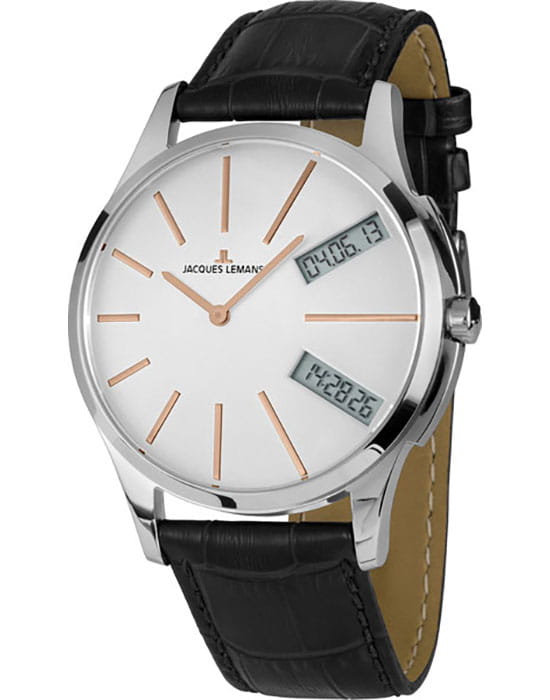 Наручные часы Jacques Lemans призваны ставить на первое место индивидуальный стиль владельца, классическая элегантность придётся по вкусу каждому. Брендовые часы привлекают минималистичным дизайном, отсутствие вычурности и обилия декорирующих элементов делают модель лучшим решением для ежедневного применения. Аксессуар можно носить с деловыми костюмами и повседневной одеждой, он органично сочетается как с классическими брюками, так и с рваными джинсами. Это настоящее часовое искусство высокого качества, часы считаются актуальным вариантом на все времена и с идеальной точностью показывают время благодаря надёжному японскому механизму.