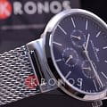 Стильно смотрится стальной браслет миланского плетения. На синем циферблате расположились симметричные функциональные счётчики. Кварцевый японский калибр Epson. Минеральное стекло со специальной закалкой. Водостойкость до 5 бар. Индикация числа и дня недели. Отображение времени в 12/24-х часовом формате.