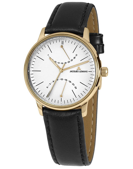 Наручные часы Jacques Lemans призваны ставить на первое место индивидуальный стиль владельца, классическая элегантность придётся по вкусу каждому. Брендовые часы привлекают минималистичным дизайном, отсутствие вычурности и обилия декорирующих элементов делают модель лучшим решением для ежедневного применения. Аксессуар можно носить с деловыми костюмами и повседневной одеждой, он органично сочетается как с классическими брюками, так и с рваными джинсами. Это настоящее часовое искусство высокого качества, часы считаются актуальным вариантом на все времена и с идеальной точностью показывают время благодаря надёжному японскому механизму.