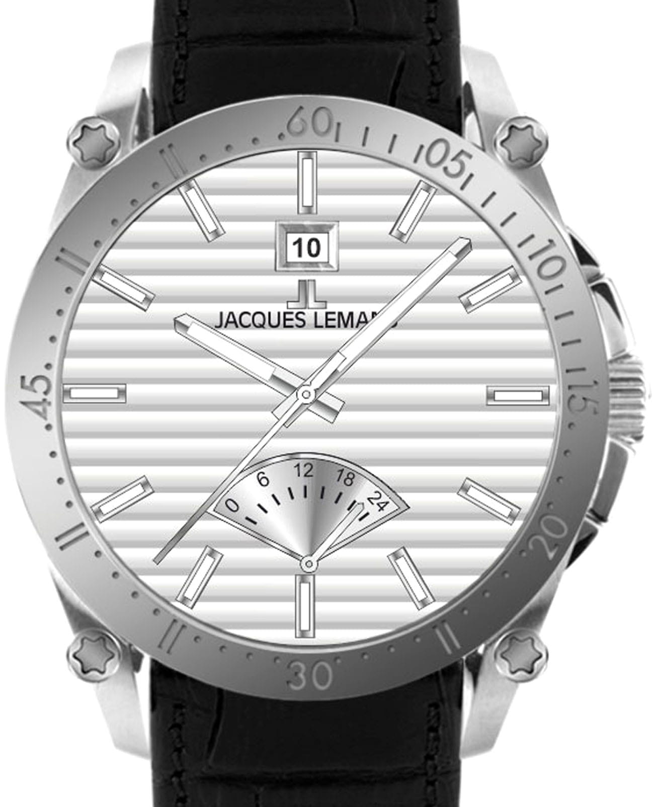 Мужские кварцевые часы Jacques Lemans 1-2202F – лаконичная красота и изысканная элегантность. Оригинальная модель с классическим оформлением станет превосходным завершением образа, наделив его индивидуальным характером. Корпус выполнен из нержавеющей стали, диаметром 44 мм, что обеспечивает долговечность и утончённый внешний вид. Минеральное стеклоМинеральное стеклоМинеральное стекло представляет собой искусственно выращенный минерал кварца. Такое стекло отличается особой устойчивостью к повреждениям и царапинам. Уступает по некоторым качествам сапфировому стеклу. с сапфировым напылением защищает циферблат от царапин. Кожаный ремешок на стандартной застёжке обеспечивает комфортное ношение. На неподвижный безельБезельВнешний ободок, закрепляющий стекло. В спортивных часах так называется поворотное кольцо с делениями на циферблате, выполняет роль таймера – замеряет отрезки времени на шкале. Неподвижный безель – элемент декора. Однонаправленно вращающийся безель на дайверских часах позволяет фиксировать моменты погружения и выныривания на поверхность. нанесена минутная шкала. Водозащита 100 метров позволит плавать, нырять и заниматься другими водными видами спорта. Стрелки и метки с люминесцентным покрытиемЛюминесцентное покрытиеПозволяет считывать показания времени в темноте. Производители наносят на стрелки, часовые индексы, безель или поверхность циферблата светонакопительный состав, дающий холодное свечение. позволяющие легко определять время даже в темноте. Окошко даты находится в положении 12 часов. Индикатор 24-х часов вынесен на отдельный циферблат. Рифленая заводная головка с защитой. Это аксессуар для мужчины, который ценит классический стиль и функциональность.