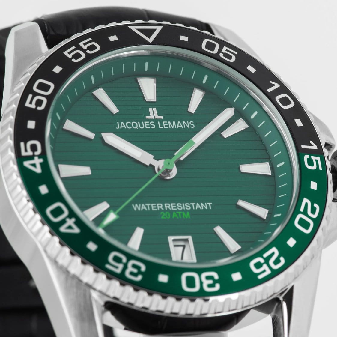 Мужские спортивные часы Jacques Lemans Liverpool Diver 1-2205C представляют собой стильный аксессуар, отражающий идеальное сочетание современного дизайна, надёжности и функциональности. Корпус из нержавеющей стали диаметром 41 мм идеально сбалансирован и элегантен. Ударопрочное минеральное стеклоМинеральное стеклоМинеральное стекло представляет собой искусственно выращенный минерал кварца. Такое стекло отличается особой устойчивостью к повреждениям и царапинам. Уступает по некоторым качествам сапфировому стеклу. Crystex защищает циферблат от царапин. Широкий безельБезельВнешний ободок, закрепляющий стекло. В спортивных часах так называется поворотное кольцо с делениями на циферблате, выполняет роль таймера – замеряет отрезки времени на шкале. Неподвижный безель – элемент декора. Однонаправленно вращающийся безель на дайверских часах позволяет фиксировать моменты погружения и выныривания на поверхность. с PVD-покрытиемPVDУльтратонкое покрытие наносится в технике вакуумного напыления, сочетает в себе нитрид титана особой прочности со слоем золота или оксида хрома. Несёт в себе декоративную или защитную функцию., на который вынесена дополнительная индикация секунд. Ремешок черного цвета состоит из двух частей: внутренняя сделана из силикона, материала, который не боится повышенной влажности, внешняя — из натуральной кожи. Водозащита 200 метров позволит плавать, нырять и заниматься другими водными видами спорта. Стрелки и метки с люминесцентным покрытиемЛюминесцентное покрытиеПозволяет считывать показания времени в темноте. Производители наносят на стрелки, часовые индексы, безель или поверхность циферблата светонакопительный состав, дающий холодное свечение. позволяющие легко определять время даже в темноте. Окошко даты находится в положении 6 часов. Это аксессуар для мужчины, который ценит классический стиль и функциональность.