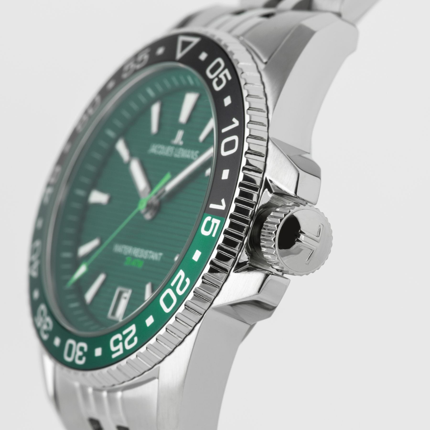 Мужские спортивные часы Jacques Lemans Liverpool Diver 1-2205J представляют собой стильный аксессуар, отражающий идеальное сочетание современного дизайна, надёжности и функциональности. Корпус из нержавеющей стали диаметром 41 мм идеально сбалансирован и элегантен. Ударопрочное минеральное стеклоМинеральное стеклоМинеральное стекло представляет собой искусственно выращенный минерал кварца. Такое стекло отличается особой устойчивостью к повреждениям и царапинам. Уступает по некоторым качествам сапфировому стеклу. Crystex защищает циферблат от царапин. Широкий безельБезельВнешний ободок, закрепляющий стекло. В спортивных часах так называется поворотное кольцо с делениями на циферблате, выполняет роль таймера – замеряет отрезки времени на шкале. Неподвижный безель – элемент декора. Однонаправленно вращающийся безель на дайверских часах позволяет фиксировать моменты погружения и выныривания на поверхность. с PVD-покрытиемPVDУльтратонкое покрытие наносится в технике вакуумного напыления, сочетает в себе нитрид титана особой прочности со слоем золота или оксида хрома. Несёт в себе декоративную или защитную функцию., на который вынесена дополнительная индикация секунд. Стальной браслет на раскладной застёжке с фиксаторомРаскладная застёжкаТакой тип застёжки используется только на браслетах из металла. Она никогда не раскрывается полностью, происходит разделение на 2 и более частей. Раскладывающая застёжка снизит вероятность потери часов к минимуму. обеспечивает комфортное ношение. Водозащита 200 метров позволит плавать, нырять и заниматься другими водными видами спорта. Стрелки и метки с люминесцентным покрытиемЛюминесцентное покрытиеПозволяет считывать показания времени в темноте. Производители наносят на стрелки, часовые индексы, безель или поверхность циферблата светонакопительный состав, дающий холодное свечение. позволяющие легко определять время даже в темноте. Окошко даты находится в положении 6 часов. Это аксессуар для мужчины, который ценит классический стиль и функциональность.