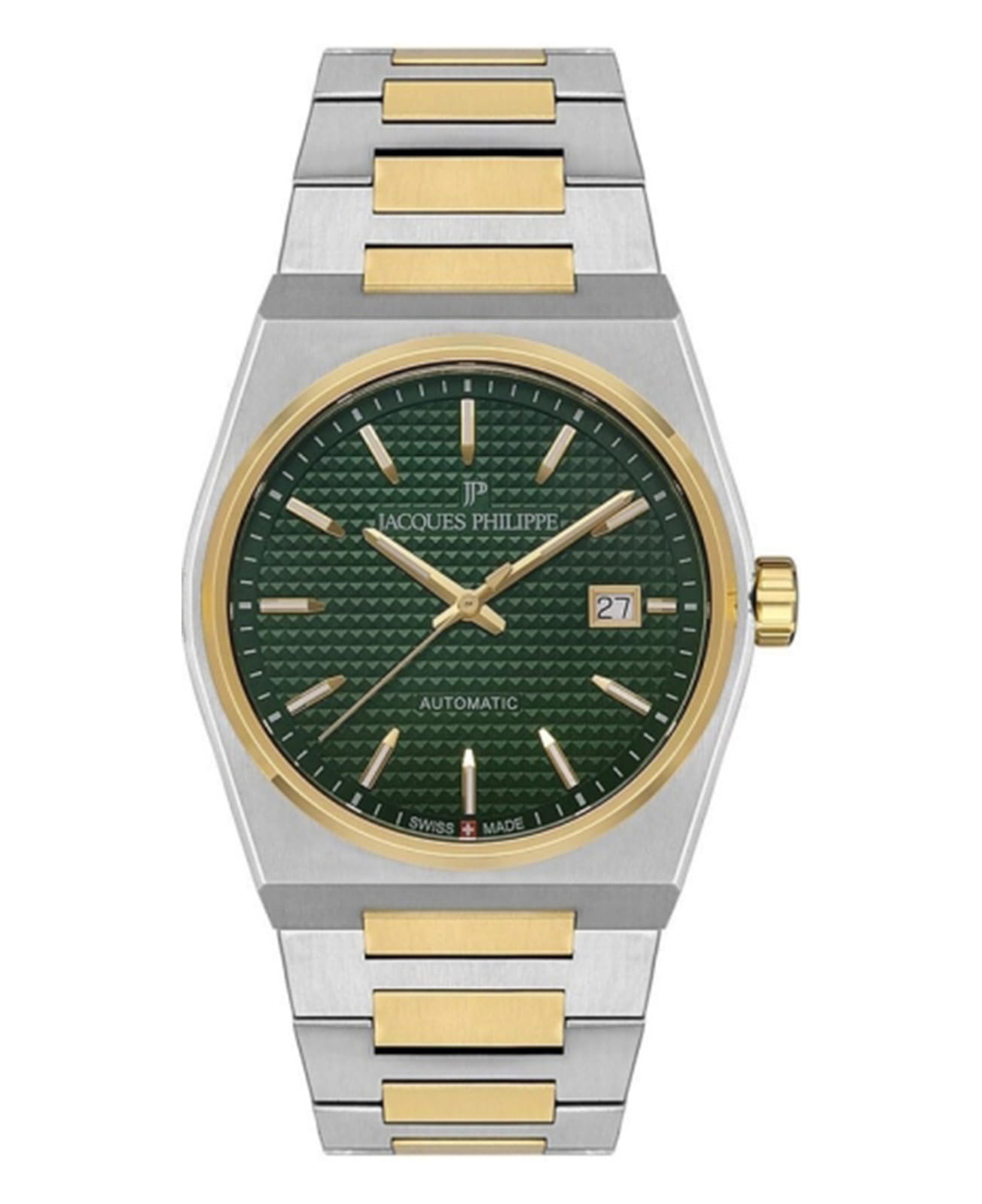 Швейцарские механические мужские часы с автоподзаводом Jacques Philippe Aurora JPAGS5473X8. Сапфировое стеклоСапфировое стеклоПрочный и надёжный материал из кристалла сапфира синтетического происхождения, характеризующийся особой твёрдостью и устойчивостью к царапинам и повреждениям. устойчивое к появлению царапин, обладающее высокой прозрачностью. Корпус часов изготовлен из стали с частичным IP-покрытиемIP-покрытиеМетод ионного напыления. Демонстрирует повышенную устойчивость к истиранию, окислению и химическим веществам. Под воздействием высокого давления и температуры около 1500°C молекулы металла надёжно соединяются с частицами корпуса часов.. Окошко даты находится в положении 3 часов. Класс водозащиты: 100 метров, позволит плавать, нырять и заниматься другими водными видами спорта. Стальной браслет с частичным IP-покрытиемIP-покрытиеМетод ионного напыления. Демонстрирует повышенную устойчивость к истиранию, окислению и химическим веществам. Под воздействием высокого давления и температуры около 1500°C молекулы металла надёжно соединяются с частицами корпуса часов. на застёжке «бабочка» с кнопкамиЗастёжка "бабочка"Такой вид застёжки дополняется предохранителями, помогающими избежать случайного раскрытия браслета. Обладают изящным исполнением. .