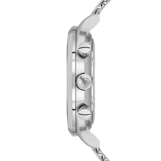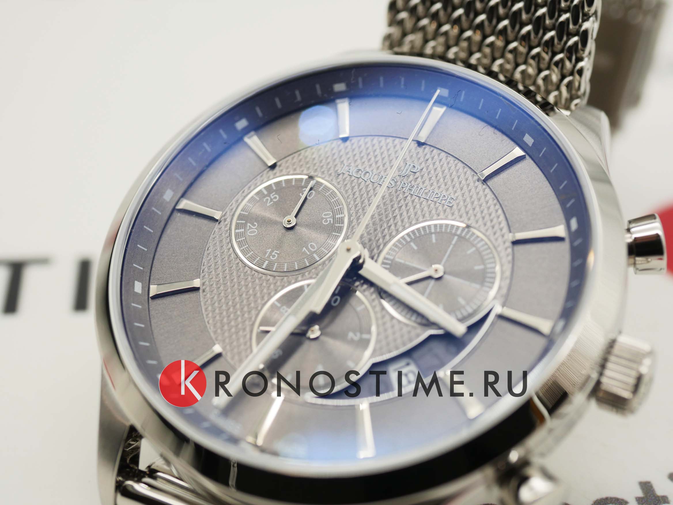 Швейцарские мужские часы-хронографХронографФункция позволяет измерять отрезки времени с особой точностью: часы, минуты, секунды. Верным признаком хронографа является наличие на циферблате 3 дополнительных окошек-счётчиков. Jacques Philippe Gallant JPQGC031216, кварцевый механизм с высокой точностью. Сапфировое стеклоСапфировое стеклоПрочный и надёжный материал из кристалла сапфира синтетического происхождения, характеризующийся особой твёрдостью и устойчивостью к царапинам и повреждениям. устойчивое к появлению царапин, обладающее высокой прозрачностью. Корпус часов изготовлен из нержавеющей стали. На циферблате три дополнительных индикатора. Стрелки с люминесцентным покрытиемЛюминесцентное покрытиеПозволяет считывать показания времени в темноте. Производители наносят на стрелки, часовые индексы, безель или поверхность циферблата светонакопительный состав, дающий холодное свечение.. Окошко даты находится между 4 и 5 часами. Класс водозащиты: 50 метров, позволит защитить корпус от случайных брызг или капель дождя. Стальной браслет миланского плетения на раскладном замкеРаскладной замокДанный вариант застежки используется только на часах с металлическим браслетом. Отличительная особенность такого крепления в том, что длина браслета становится универсальной и вы можете самостоятельно отрегулировать нужный вам размер – застежка просто двигается по браслету часов..