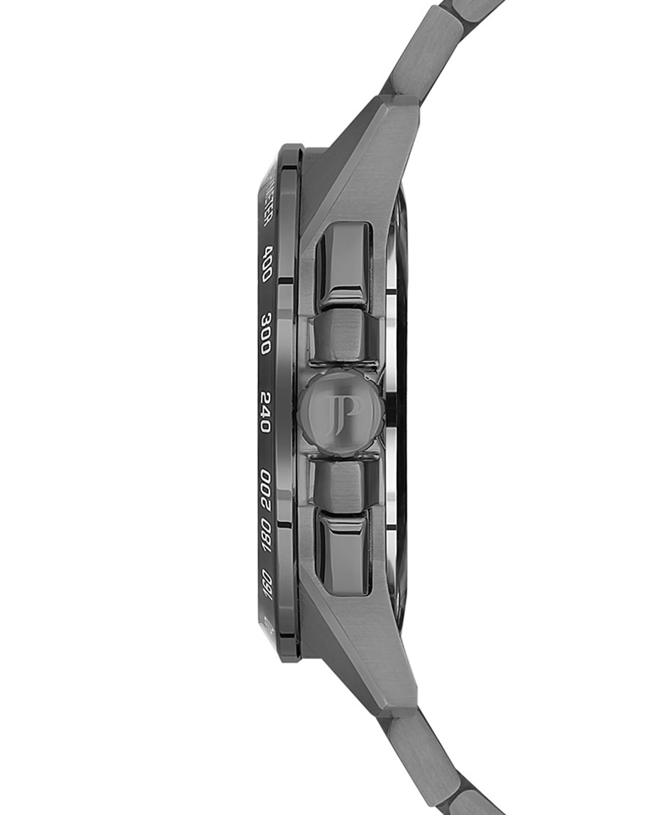 Швейцарские мужские часы-хронографХронографФункция позволяет измерять отрезки времени с особой точностью: часы, минуты, секунды. Верным признаком хронографа является наличие на циферблате 3 дополнительных окошек-счётчиков. с секундомеромСекундомерСекундоме́р — прибор, способный измерять интервалы времени с точностью до долей секунды. Jacques Philippe Magnificus JPQGC258347, кварцевый механизм с высокой точностью. Сапфировое стеклоСапфировое стеклоПрочный и надёжный материал из кристалла сапфира синтетического происхождения, характеризующийся особой твёрдостью и устойчивостью к царапинам и повреждениям. устойчивое к появлению царапин, обладающее высокой прозрачностью. Корпус часов изготовлен из нержавеющей стали с IP-покрытиемIP-покрытиеМетод ионного напыления. Демонстрирует повышенную устойчивость к истиранию, окислению и химическим веществам. Под воздействием высокого давления и температуры около 1500°C молекулы металла надёжно соединяются с частицами корпуса часов.. БезельБезельВнешний ободок, закрепляющий стекло. В спортивных часах так называется поворотное кольцо с делениями на циферблате, выполняет роль таймера – замеряет отрезки времени на шкале. Неподвижный безель – элемент декора. Однонаправленно вращающийся безель на дайверских часах позволяет фиксировать моменты погружения и выныривания на поверхность. с тахиметромТахиметрРазмеченная шкала, располагается на ободке или безеле часов. Тахиметр позволяет рассчитать скорость на определённом участке пути, расстояние измеряется в километрах или милях.. На циферблате три дополнительных индикатора. Окошко даты находится в положении 6 часов. Стрелки с люминесцентным покрытиемЛюминесцентное покрытиеПозволяет считывать показания времени в темноте. Производители наносят на стрелки, часовые индексы, безель или поверхность циферблата светонакопительный состав, дающий холодное свечение.. Класс водозащиты: 100 метров, позволит плавать, нырять и заниматься другими водными видами спорта. Стальной браслет с IP-покрытиемIP-покрытиеМетод ионного напыления. Демонстрирует повышенную устойчивость к истиранию, окислению и химическим веществам. Под воздействием высокого давления и температуры около 1500°C молекулы металла надёжно соединяются с частицами корпуса часов. на застёжке «бабочка» с кнопкамиЗастёжка "бабочка"Такой вид застёжки дополняется предохранителями, помогающими избежать случайного раскрытия браслета. Обладают изящным исполнением. .