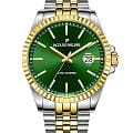 Jacques Philippe JPQGS5973X8V2 — мужские часы в сдержанном классическом исполнении с акцентом на простоту и надёжность. Корпус диаметром 40 мм выполнен из нержавеющей стали, а его умеренная толщина — около 12 мм — делает модель универсальной и комфортной в повседневной носке. БезельБезельВнешний ободок, закрепляющий стекло. В спортивных часах так называется поворотное кольцо с делениями на циферблате, выполняет роль таймера – замеряет отрезки времени на шкале. Неподвижный безель – элемент декора. Однонаправленно вращающийся безель на дайверских часах позволяет фиксировать моменты погружения и выныривания на поверхность. с PVD-покрытиемPVDУльтратонкое покрытие наносится в технике вакуумного напыления, сочетает в себе нитрид титана особой прочности со слоем золота или оксида хрома. Несёт в себе декоративную или защитную функцию.. Циферблат оформлен в светлом зеленом тоне с тонкими стрелками, лаконичными часовыми метками и аккуратным окошком даты в позиции «3 часа». Минималистичный стиль подчёркивает строгость и чистоту дизайна. Поверхность защищена устойчивым к царапинам сапфировым стекломСапфировое стеклоПрочный и надёжный материал из кристалла сапфира синтетического происхождения, характеризующийся особой твёрдостью и устойчивостью к царапинам и повреждениям., которое обеспечивает хорошую читаемость и долговечность. Механизм — точный швейцарский кварц, не требующий подзавода. Он обеспечивает стабильную и бесперебойную работу часов, сохраняя точность в любых условиях. Браслет из нержавеющей стали с PVD-покрытиемPVDУльтратонкое покрытие наносится в технике вакуумного напыления, сочетает в себе нитрид титана особой прочности со слоем золота или оксида хрома. Несёт в себе декоративную или защитную функцию. визуально продолжает корпус и фиксируется с помощью надёжной застёжки, обеспечивая комфортную посадку. Ширина браслета — 22 мм. Водозащита до 10 ATM позволяет использовать часы не только в повседневной жизни, но и при активности на воде. Jacques Philippe — это надёжная и универсальная модель для тех, кто ценит швейцарскую точность, простоту и уверенный стиль без лишних деталей.