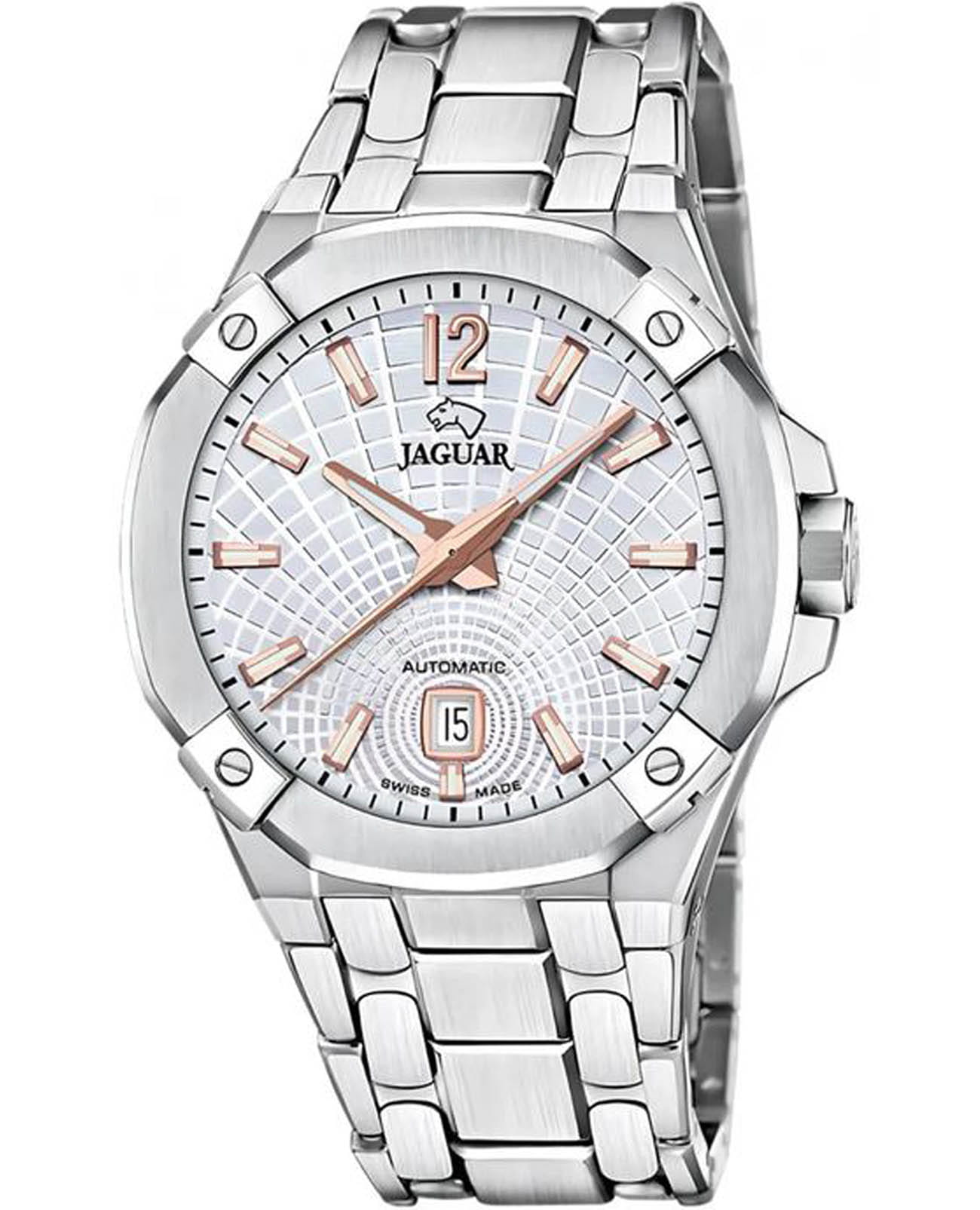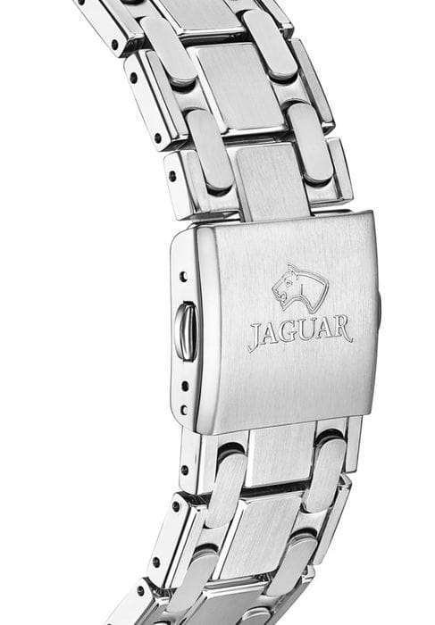 Мужские швейцарские часы Jaguar Diplomatic J1029/1 представляют собой воплощение высокого часового искусства. Они оснащены механическим механизмом с автоподзаводом, что обеспечивает точность и надёжность работы. Часы защищены сапфировым стекломСапфировое стеклоПрочный и надёжный материал из кристалла сапфира синтетического происхождения, характеризующийся особой твёрдостью и устойчивостью к царапинам и повреждениям., устойчивым к мелким механическим повреждениям, что гарантирует сохранность механизма. Корпус часов выполнен из нержавеющей стали, придающий ему прочность и долговечность. Стрелки и метки часов покрыты люминесцентным составомЛюминесцентное покрытиеПозволяет считывать показания времени в темноте. Производители наносят на стрелки, часовые индексы, безель или поверхность циферблата светонакопительный состав, дающий холодное свечение., обеспечивающий их хорошую видимость в условиях недостаточной освещённости. Окошко даты расположено в положении 6 часов. Класс водозащиты часов составляет 100 метров, что позволяет плавать, нырять и заниматься другими водными видами спорта. Изысканный стальной браслет на раскладной застёжкеРаскладная застёжкаТакой тип застёжки используется только на браслетах из металла. Она никогда не раскрывается полностью, происходит разделение на 2 и более частей. Раскладывающая застёжка снизит вероятность потери часов к минимуму., что обеспечивает удобство и комфорт при ношении. Стильный  циферблат и изысканные детали делают эти часы незаменимым аксессуаром для любого случая, от официальных мероприятий до повседневного использования.