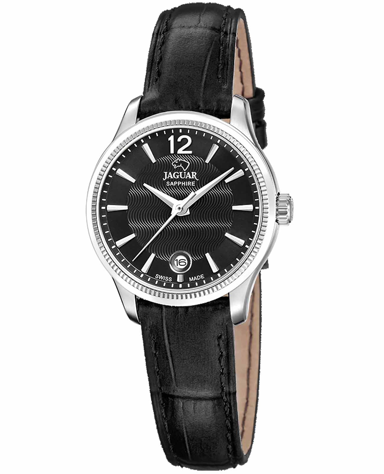 Женские швейцарские часы Jaguar ESSENTIA J1046/4 — это стильное сочетание элегантности и современного дизайна. Корпус из нержавеющей стали диаметром 29 мм идеально сбалансирован и элегантен. Сапфировое стеклоСапфировое стеклоПрочный и надёжный материал из кристалла сапфира синтетического происхождения, характеризующийся особой твёрдостью и устойчивостью к царапинам и повреждениям. с антибликовым покрытием защищает циферблат от царапин и обеспечивает отличную читаемость при любом освещении. Кожаный ремешок на застёжке-бабочке с кнопкамиЗастёжка "бабочка"Такой вид застёжки дополняется предохранителями, помогающими избежать случайного раскрытия браслета. Обладают изящным исполнением. идеально дополняют дизайн часов, обеспечивая комфортное ношение. Часы обладают впечатляющей водонепроницаемостью до 5 бар (50 метров), что делает их идеальными для повседневной носки. Тщательно продуманный циферблат и изысканные детали делают эти часы незаменимым аксессуаром для любого случая, от официальных мероприятий до повседневного использования.